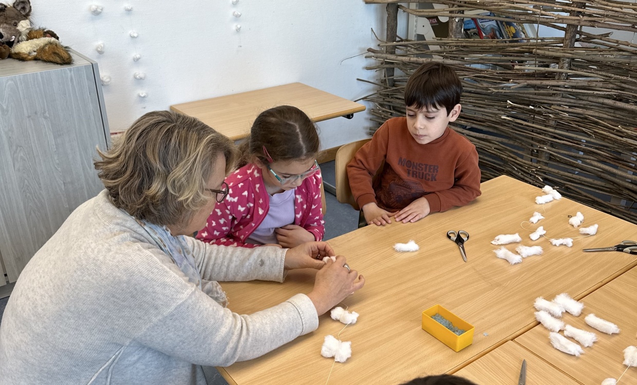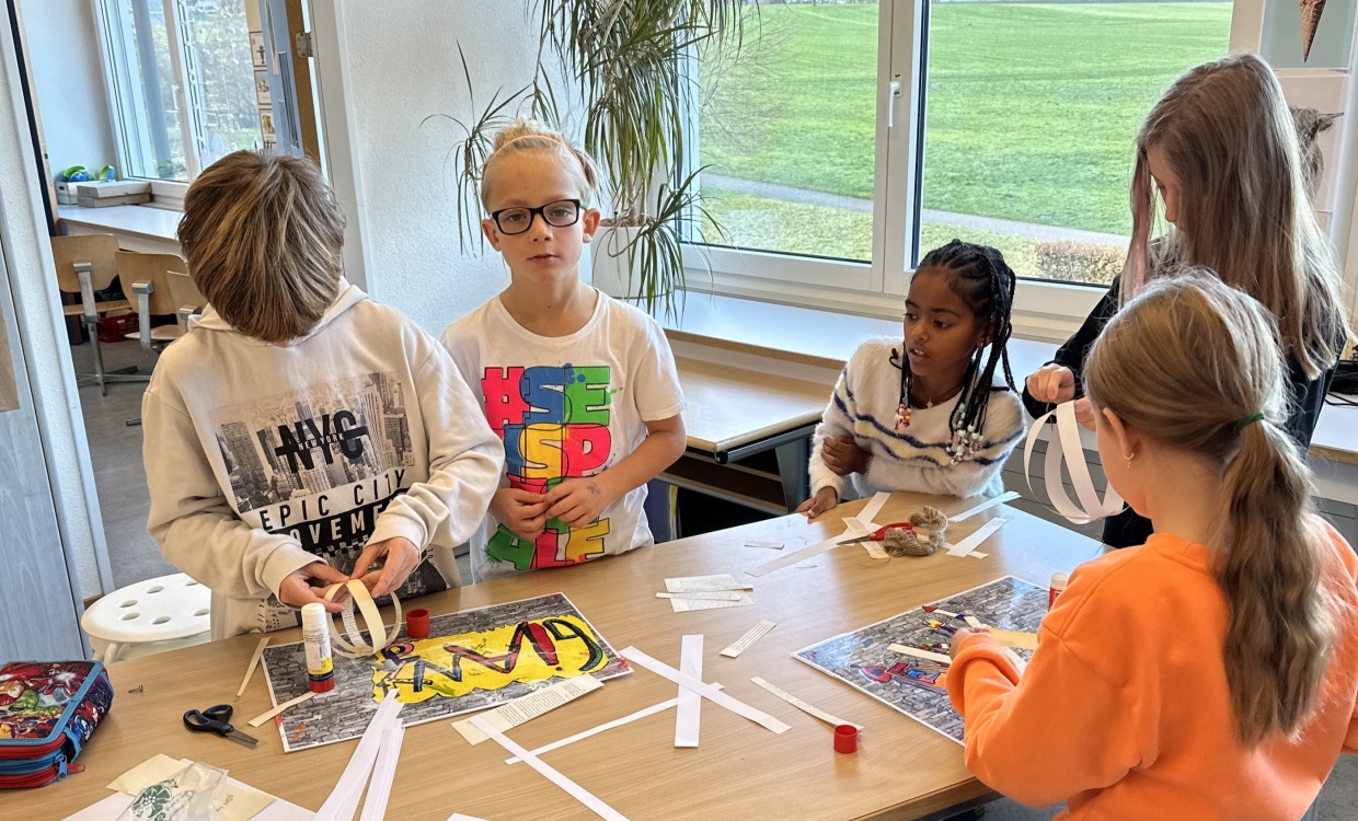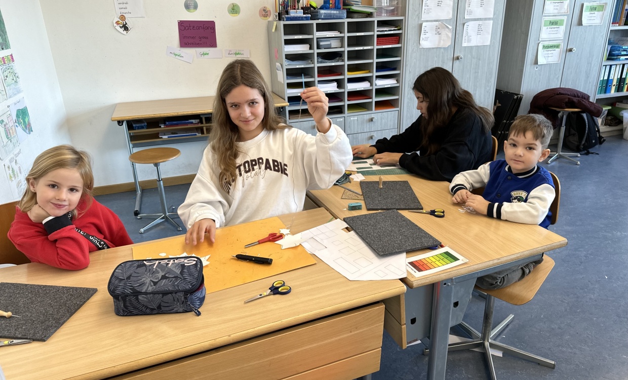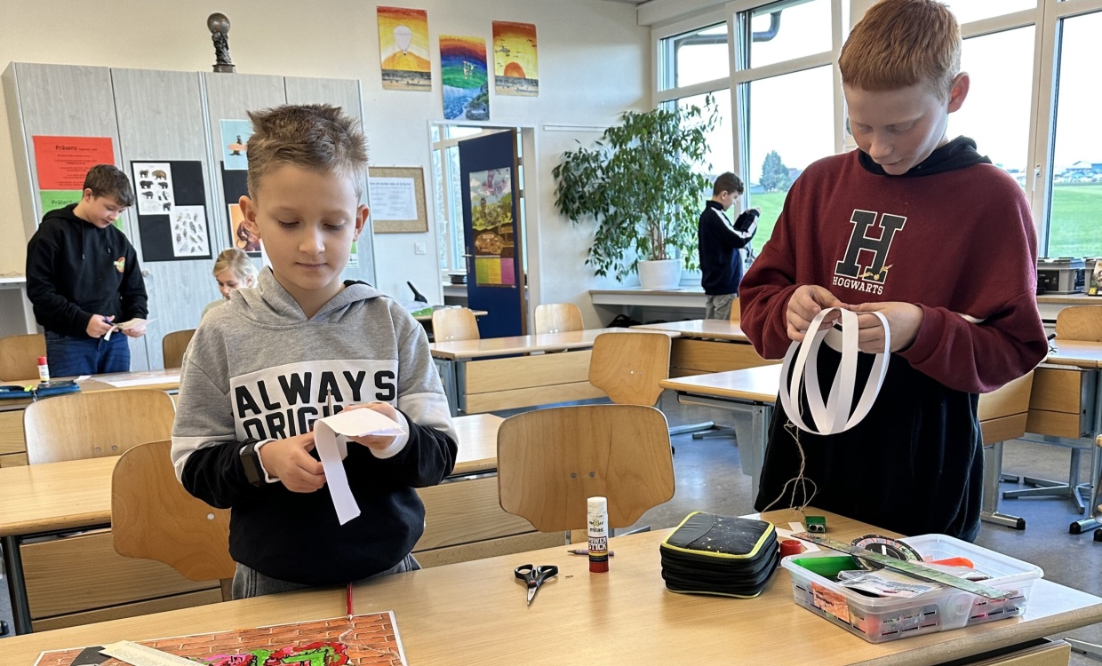 Vor der Adventszeit wurde das Schulhaus weihnachtlich geschmückt. An einem Tag wurden der Eingangsbereich, die Fenster und Gänge in klassendurchmischten Gruppen mit selbstgebastelten Dekorationen verschönert. Die Stimmung bei allen Beteiligten war entspannt und fröhlich. Mit viel Einsatz und Weihnachtsmusik verwandelte sich das Schulhaus im Laufe des Morgens in eine Winterlandschaft.