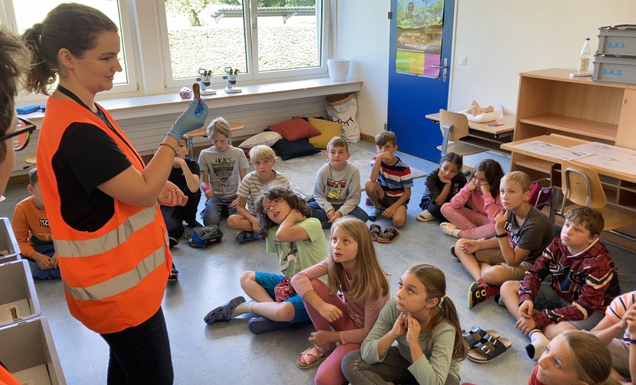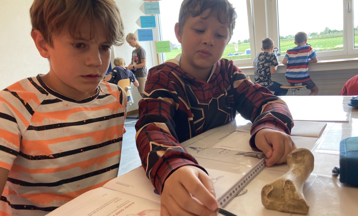 Nadine Mossmann und ihre beiden Begleiter*innen liessen uns eintauchen in die Geschichte. Alle Schülerinnen und Schüler von der 3. bis zur 6. Klasse erfuhren an einem halben Morgen oder am Nachmittag, wie die Arbeit eines/r Archäologen/in aussieht und was sie aus den verschiedenen Zeiten gefunden haben.