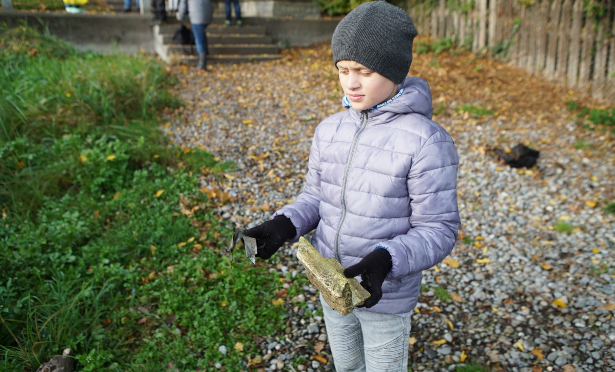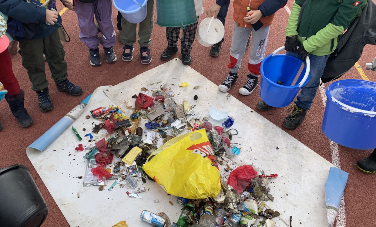 "Es hat Spass gemacht, weil wir so viel Müll gefunden haben. Am Schluss beim Schulhaus haben alle Klassen den gesammelten Abfall ausgeleert. Wir waren also fleissige Sammler." (Isabella, 2.Kl.)