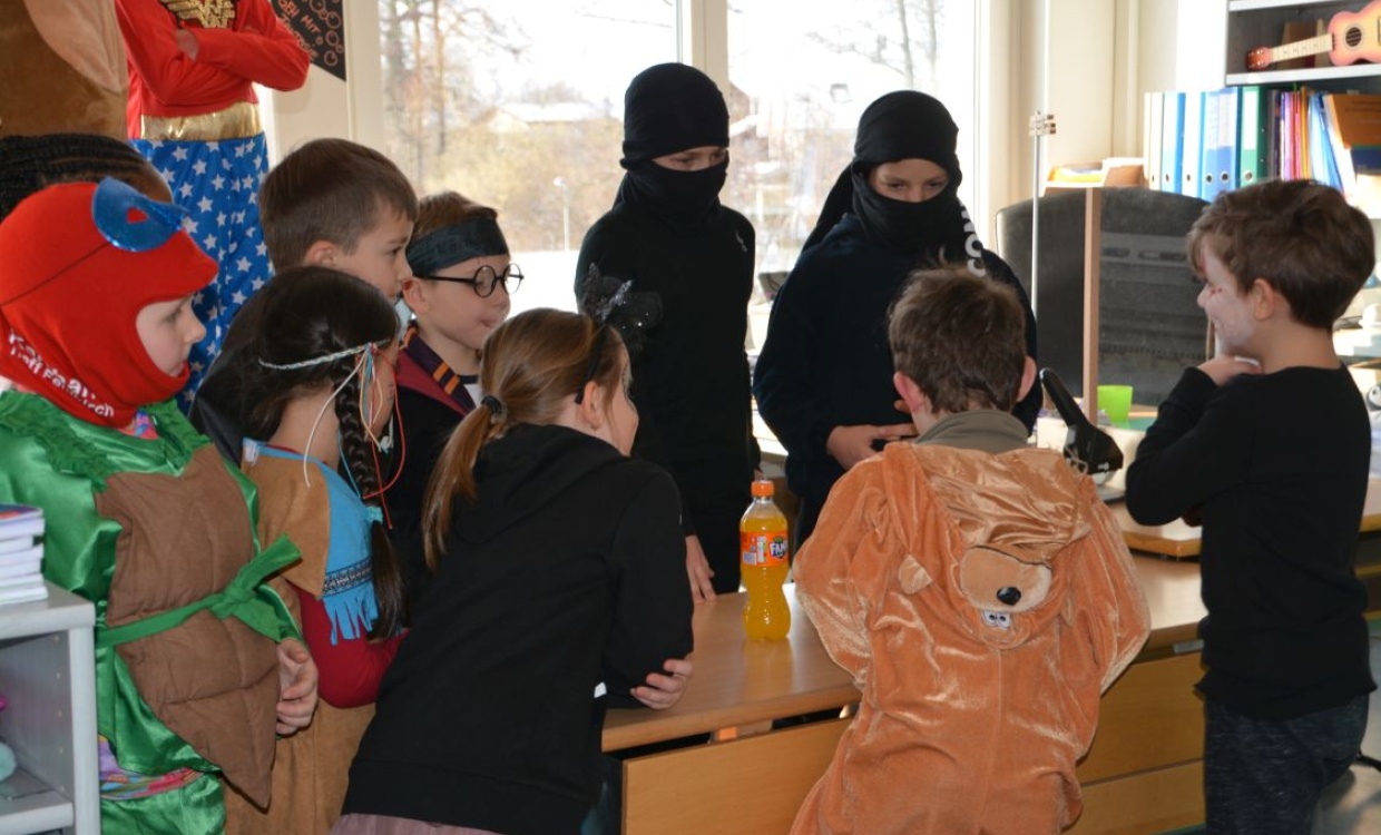 Dieses Jahr fand der Fasnachtsball im Schulhaus statt. Traditionellerweise organisierten die 6. Klässlerinnen und 6. Klässler das bunte Treiben am Donnerstagnachmittag. In sechs Schulzimmer boten sie für die anderen Kinder verschiedene Spiele an, welche im Klassenverband besucht wurden.