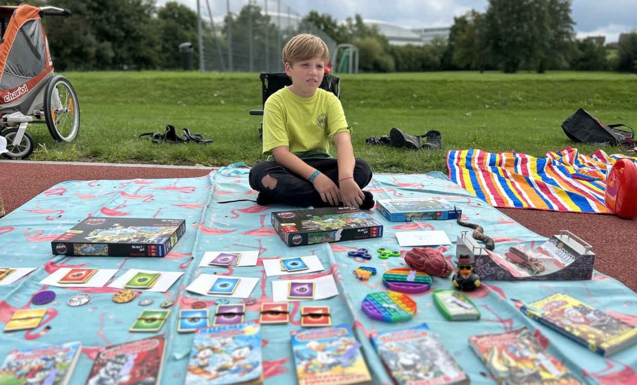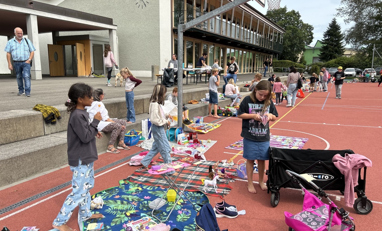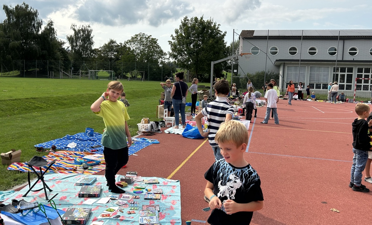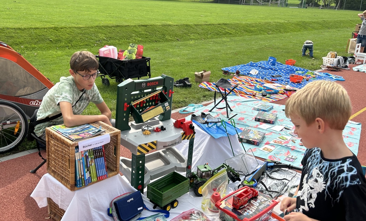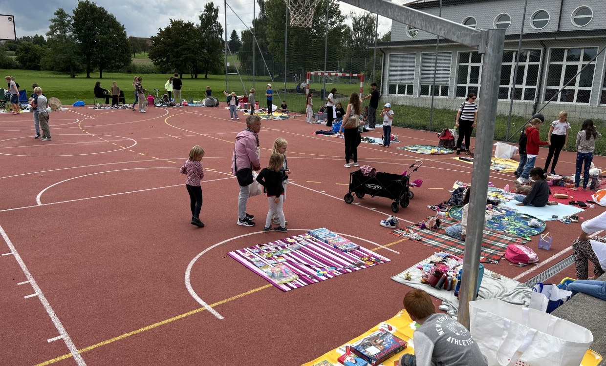 Bei strahlendem Sonnenschein fanden sich die kleinen und grossen Kinder auf dem roten Platz ein. Viele sind der Einladung am freien Mittwochnachmittag gefolgt und breiteten ihre unzähligen und guterhaltenen Spielsachen auf den mitgebrachten Decken aus. Ein emsiges Treiben in einer gemütlichen Atmosphäre entstand. Es wurde gelacht, gefeilscht und Geschichten über das Lieblingsspielzeug ausgetauscht. Die Elternresonanzgruppe spendete leckere Kuchen und zur Erfrischung gab es eine Sirupbar. Es war ein toller und kurzweiliger Nachmittag!