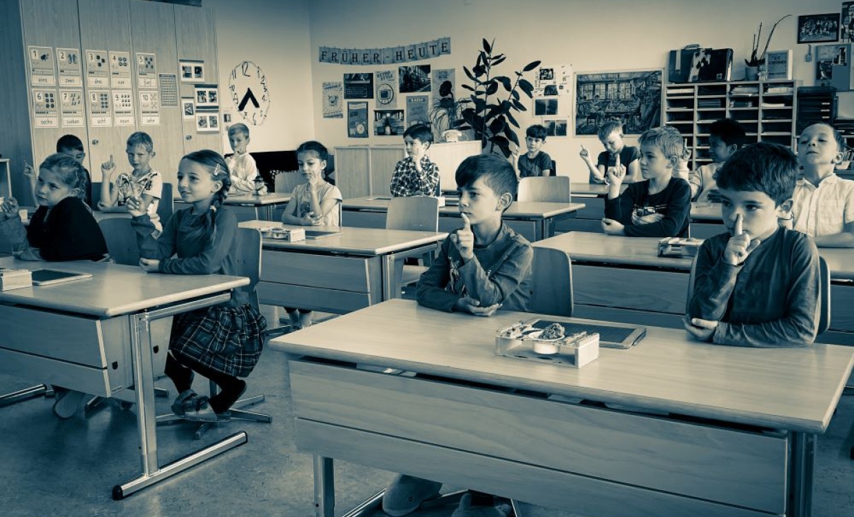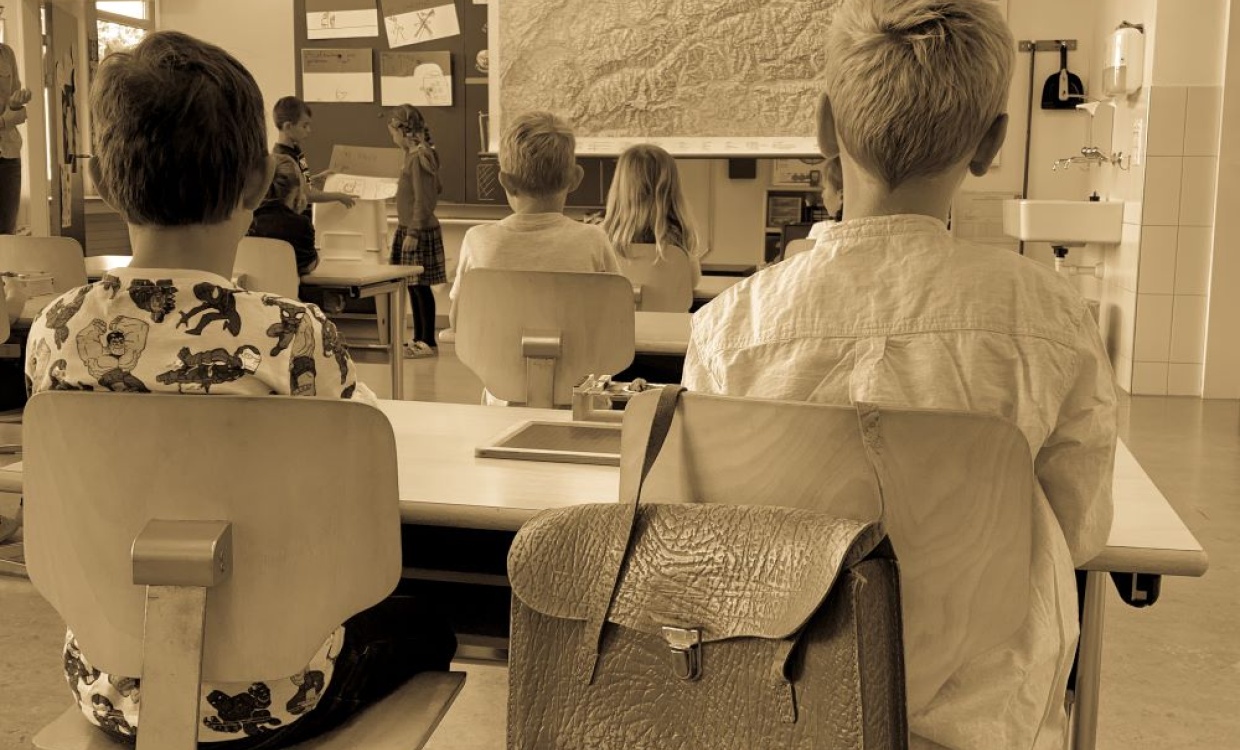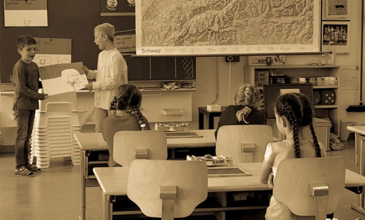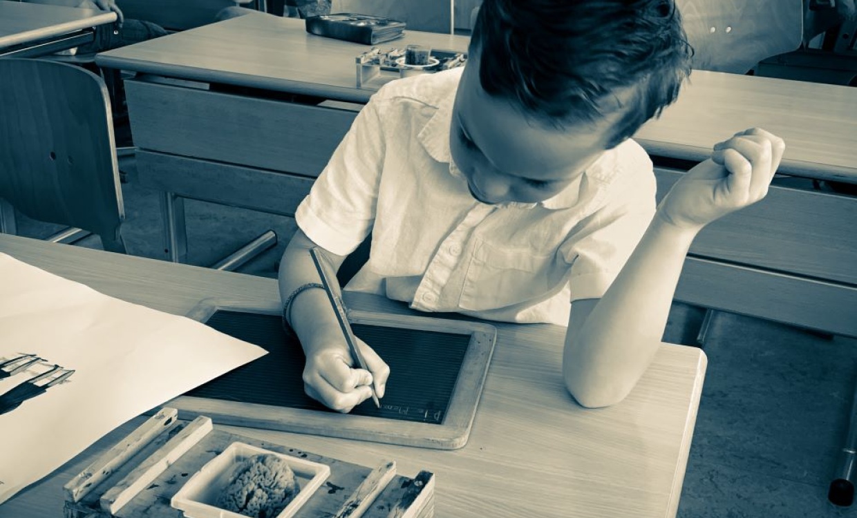 Als Abschluss des Themas „Früher-heute“ tauchte die 1. Klasse nochmals einen Vormittag lang in die Zeit von damals ein. So kamen viele Kinder dem Thema entsprechend angezogen oder sie brachten einen passenden Gegenstand mit in die Schule. Die Kinder lernten vieles über den Alltag von früher. Es war für die Klasse ungewohnt in Reihen zu sitzen und es wurde fleissig auf Schiefertafeln geschrieben.