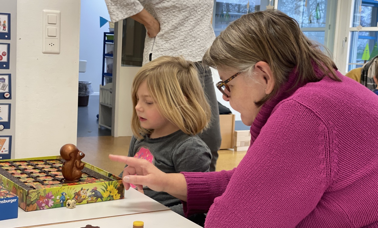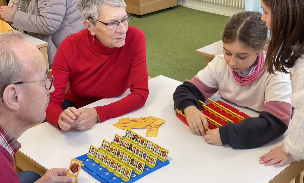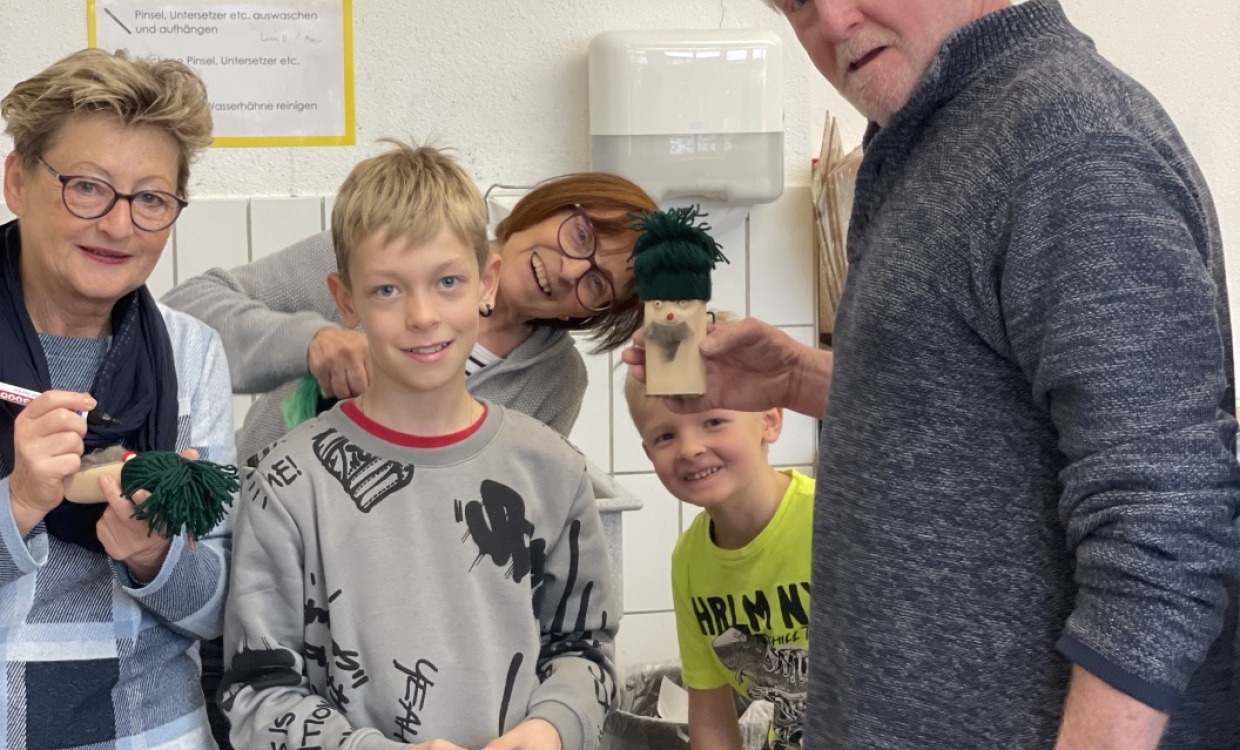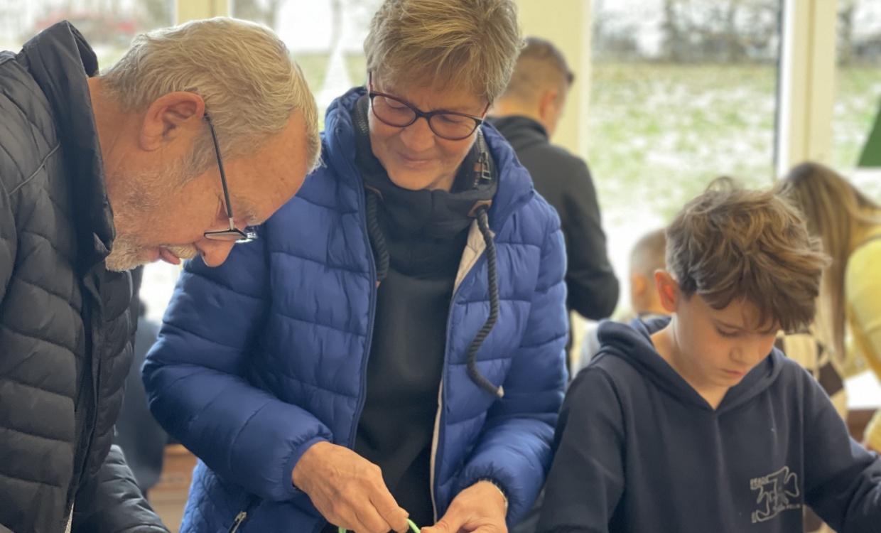 Am Generationenanlass durften für einmal die Grosseltern die Kinder durch die Schulzimmer begleiten. Unterschiedliche weihnachtliche Angebote und eine Kaffestube luden die Besucher*innen zum gemeinsamen Ausprobieren und Erfahrungen sammeln ein. Die Kinder freuten sich sehr, die Verwandten durchs Schulhaus zu führen und wollten am liebsten noch lange an den Posten verweilen.