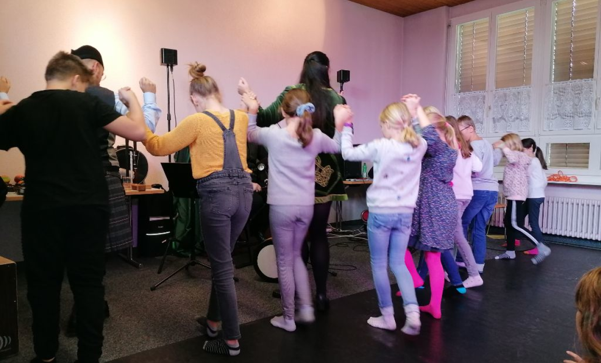 Am Freitag vor den Herbstferien besuchte uns die keltische Musikgruppe "Ceol" in Frasnacht. Die Musiker, Tänzer/innen und Beatboxer begeisterten die Kindergärtner und Primarschüler mit verschiedenen Musikstilen. Die Kinder hatten viele Möglichkeiten, sich aktiv am Konzert zu beteiligen.