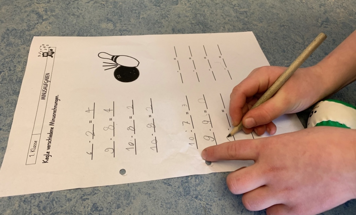 Die Schülerinnen und Schüler der 1. Klasse lernen Minusrechnen.