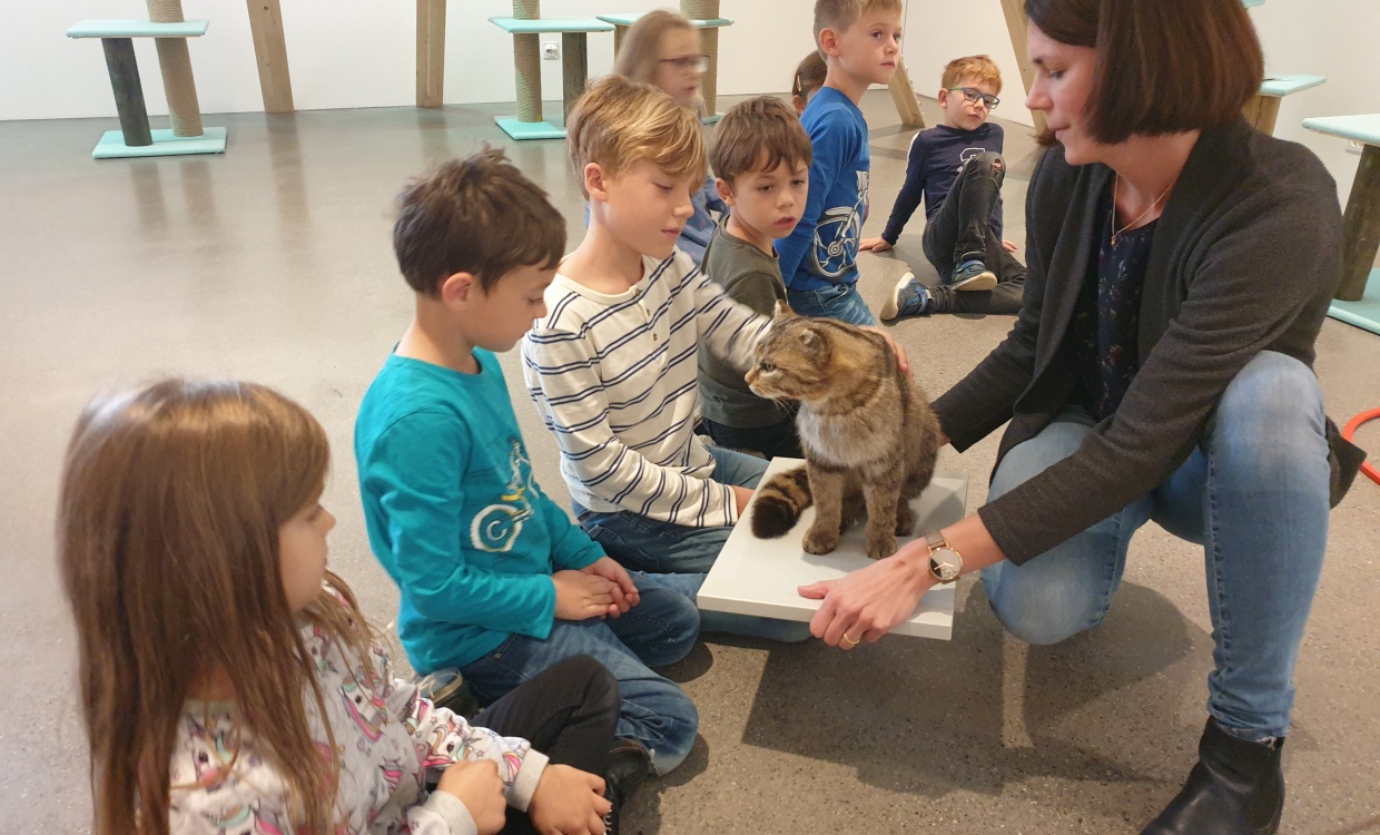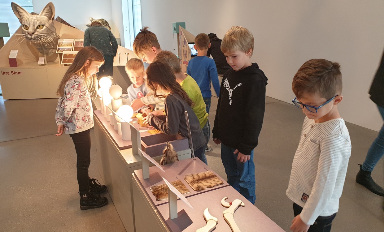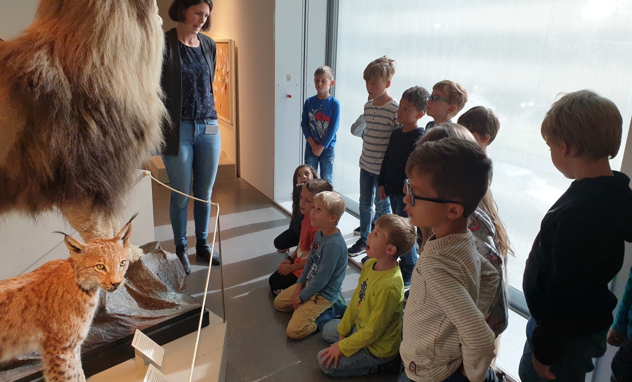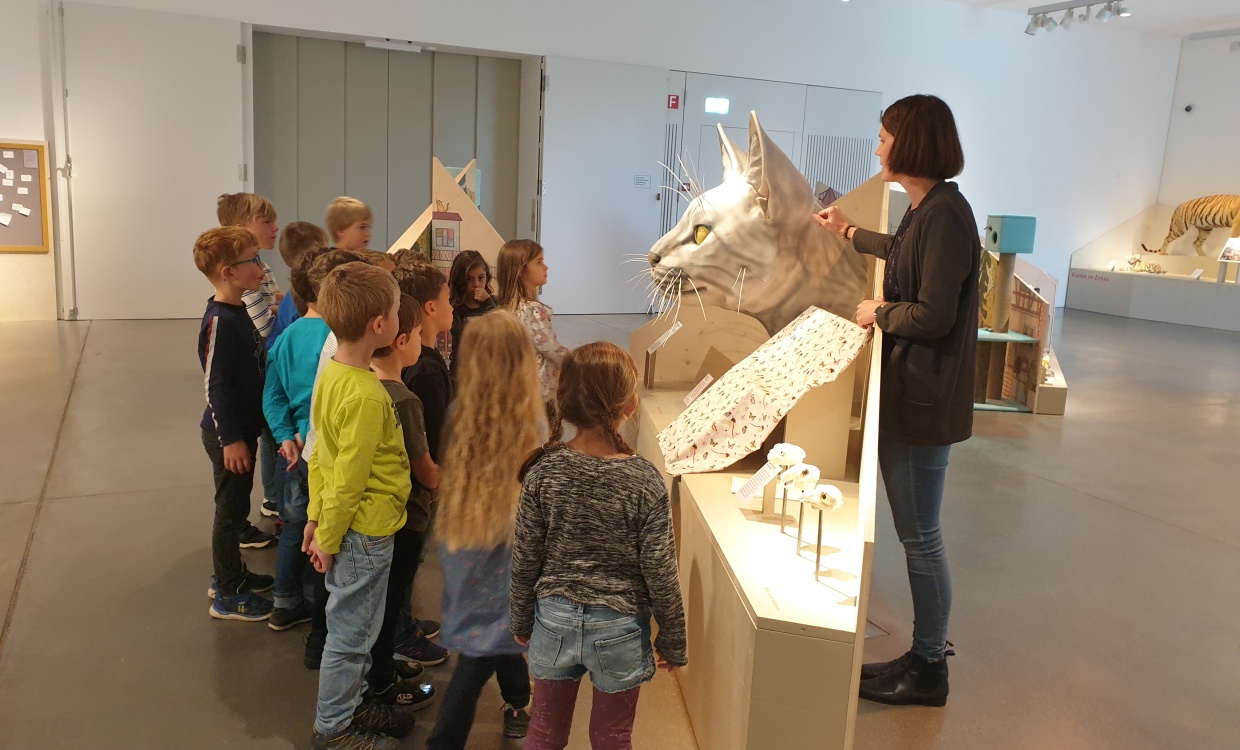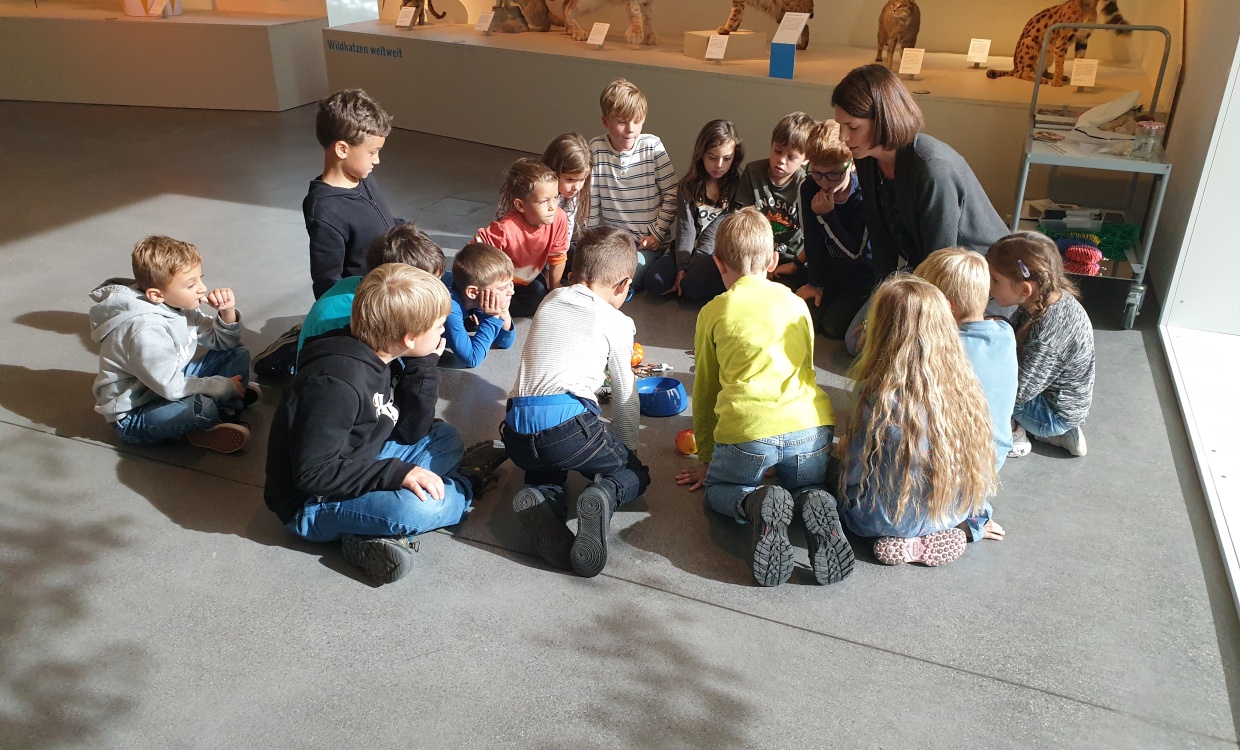 Die erste Klasse macht einen Ausflug ins Naturmuseum. Dort führt uns Frau R. durch die Katzenausstellung. Spielerisch lernen die Kinder diese Tiere besser kennen. Sie erfahren sehr viel Interessantes, Spannendes, Neues...Es bleibt auch Zeit, die Ausstellung eigenständig zu erkunden...Wir kehren mit einer glücklichen Kinderschar zurück.
