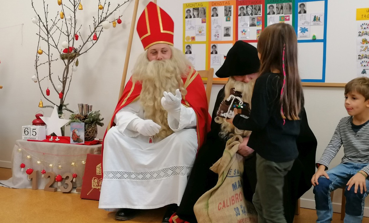 Heute wurden in den Schulzimmer passend zum Nikolaustag die verschiedensten Aktivitäten durchgeführt und die Kindergartenkinder empfingen den Nikolaus freudig. In den verschiedenen Klassen wurden fleissig Nikolausbilder gesucht, gezeichnet, Geschichten erzählt, gebacken, Lebkuchen verziert, gesungen, gerätselt und im Turnen ein Chlausparcour absolviert. Natürlich freuten sich einige Klassen auch darüber, dass der Nikolaus ihnen einen leckeren Znüni gebracht hat.