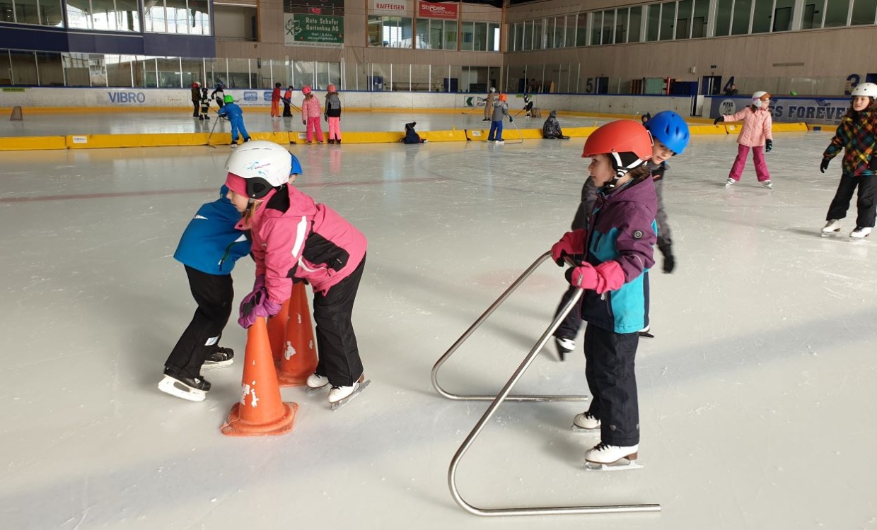 Wir haben Eishockey gespielt und sind Schlittschuh gefahren. Es war schwierig Goals zu schiessen beim Eishockey.