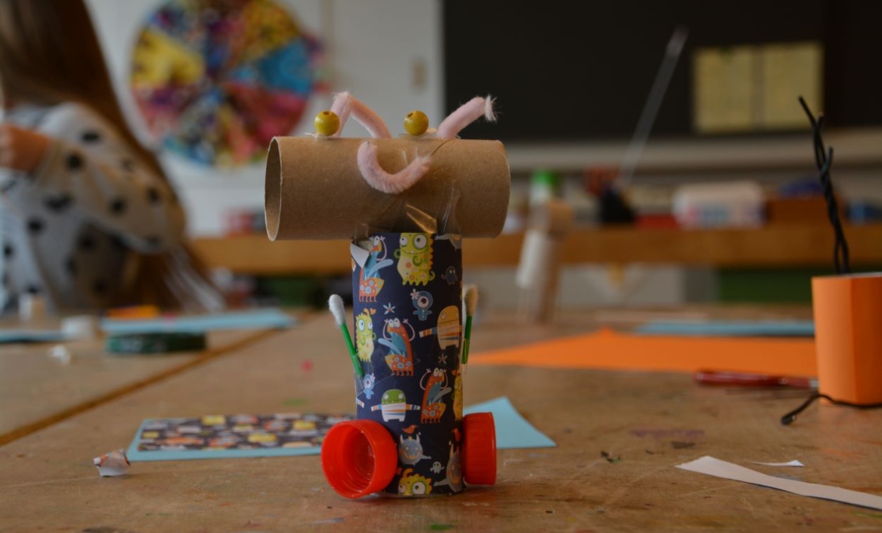 Wir haben eine Roboterbiene mit Knöpfen programmiert. Dann haben wir eine coole Rechen-Schnitzeljagd gemacht. Am Nachmittag haben wir eine Winterolympiade gespielt und einen kleinen Roboter gebastelt. -