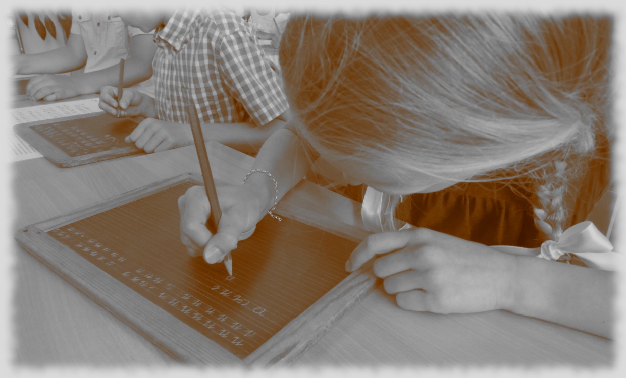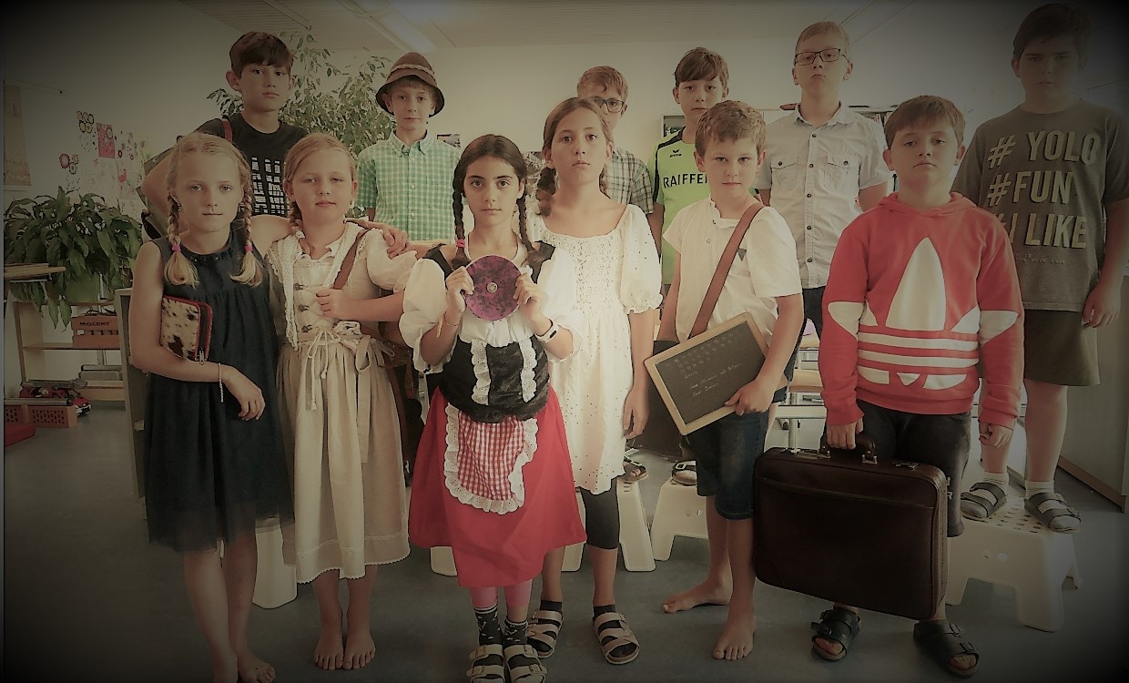 Aufstehen, guten Morgen-Chor, hinsetzten. So startete unser Schultag anno dazumal. Auf Schiefertafeln haben wir in Sütterlinschrift geschrieben und gerechnet. Mit Tinte und Feder lösten die Kinder verschiedene Aufgaben. Dazwischen etwas körperliche Ertüchtigung, bevor es wieder still und konzentriert an die Arbeit ging.