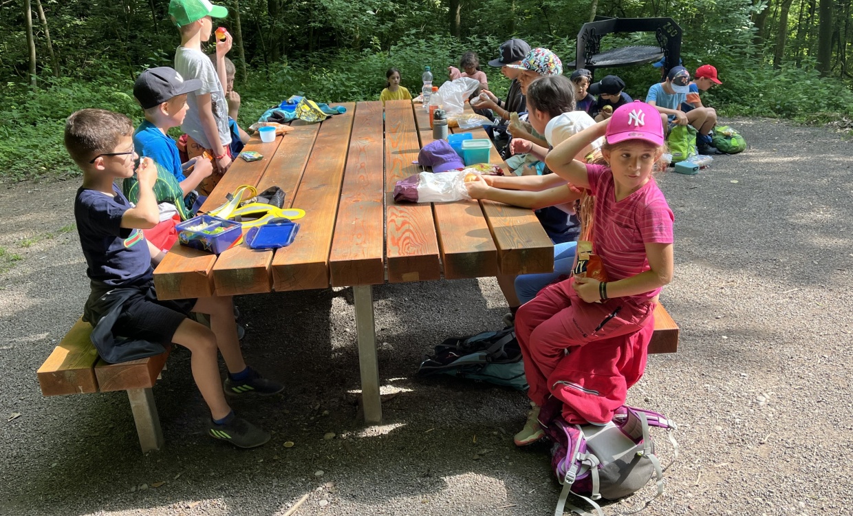 Picknicken, Würste braten, Schlangenbrot backen, Erkunden und Spielen auf der Burg…dies alles bei herrlichem Sonnenschein…