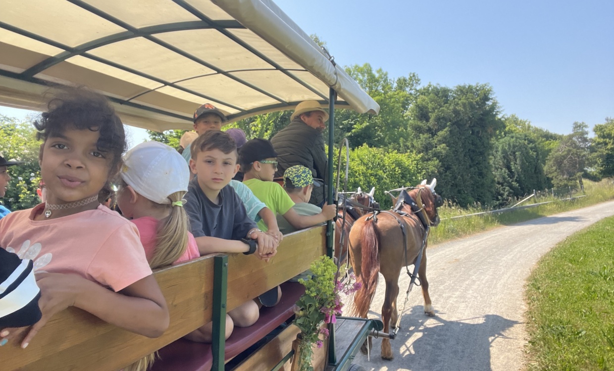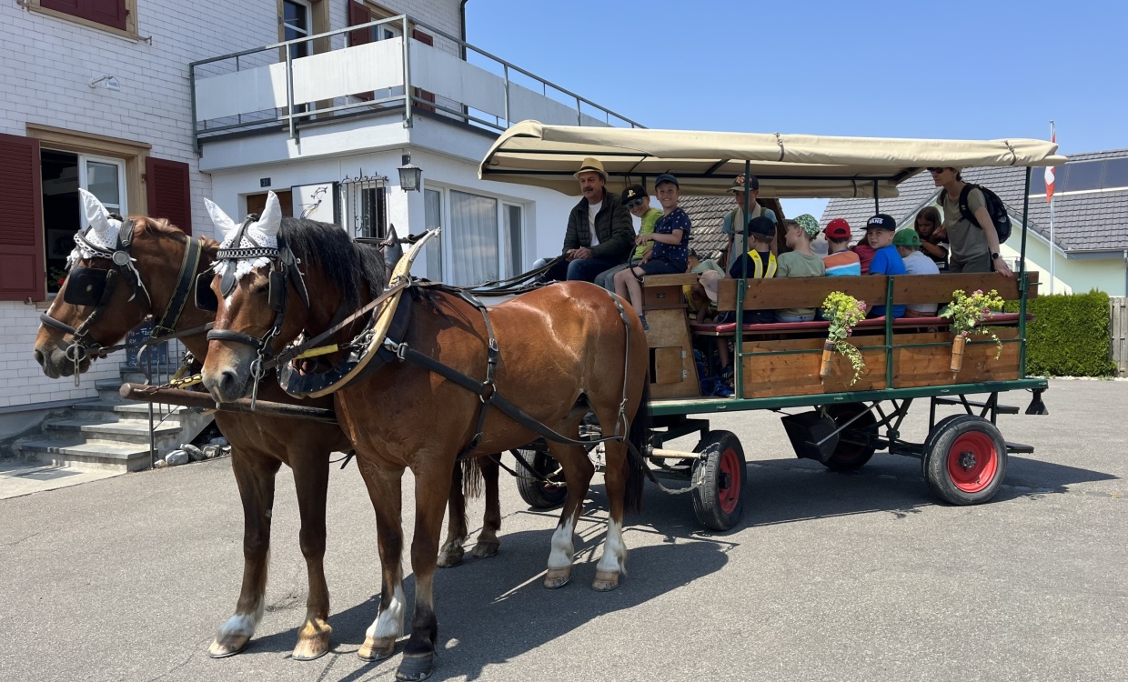 Für die Rückreise holte uns der grosse Pferdewagen ab und fuhr eine Stunde gemütlich bis vor unser Schulhaus.