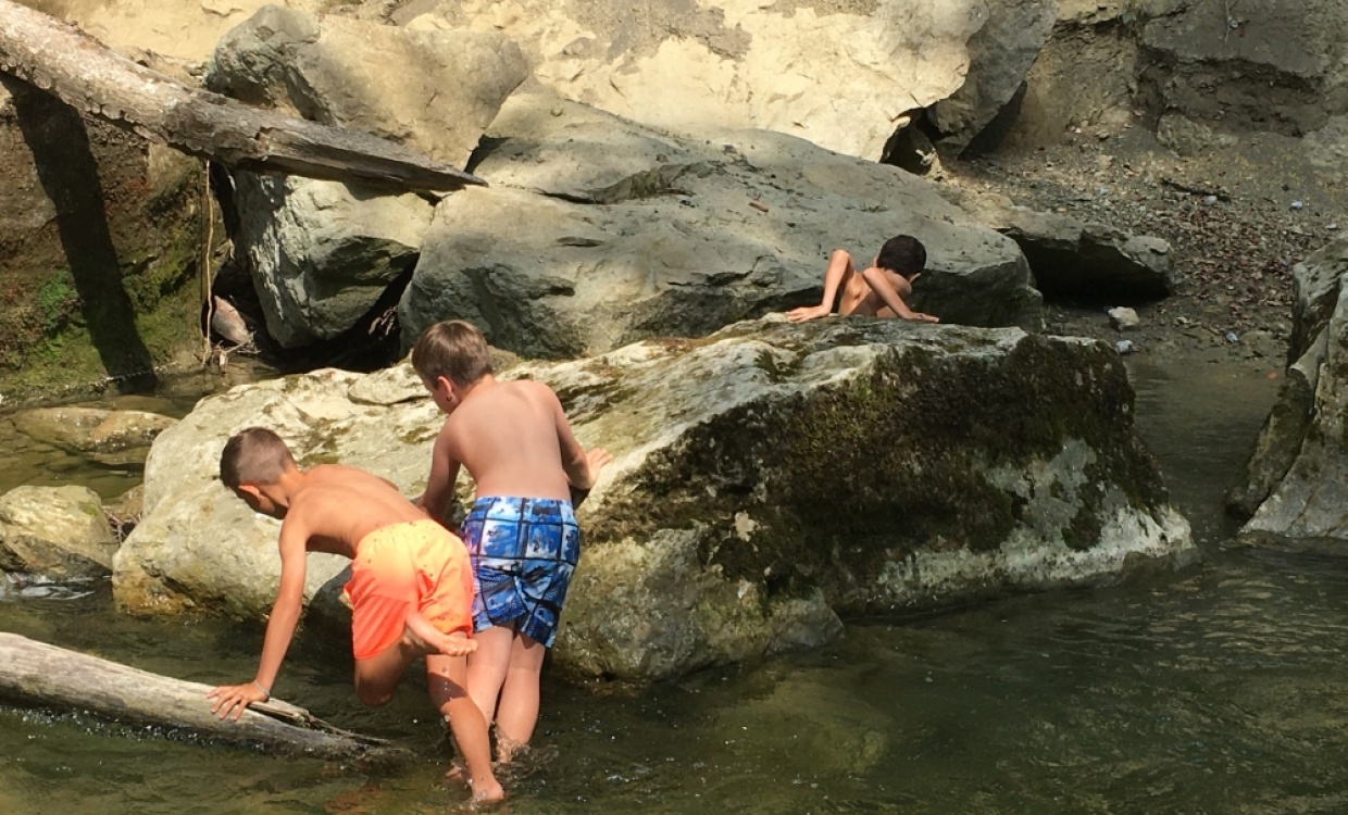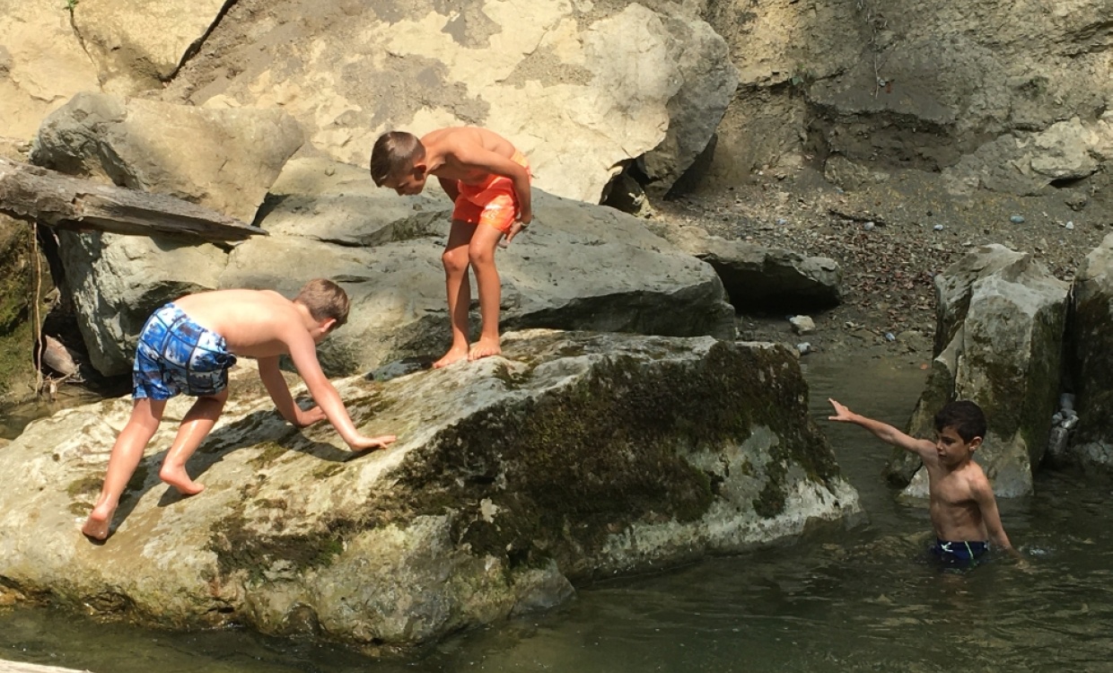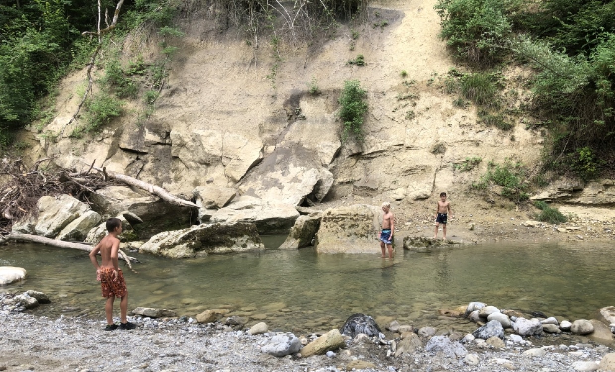 Ein herrlicher Tag, nicht zu heiss und nicht zu kühl zum Wandern, Grillieren und Spielen. Das Wasser der Goldach war eine echte Erfrischung! Zum Glück hatten wir genügend Zeit, um auch beim Horner Wald in die Goldach zu springen oder uns durch ein Rohr spülen zu lassen.