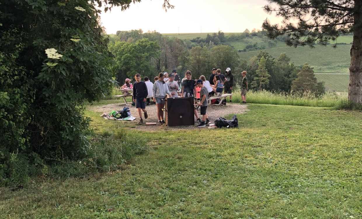 Wir fuhren mit dem Zug und liefen danach 45min zum Bauernhof. Als wir angekommen waren sind wir zur Grillstelle gelaufen das dauerte ungefähr 15min. Dann kam noch ein heftiger Regen dazu. Als der Regen aufhörte grillten wir Würste und Marshmallows. Dann liefen wir wieder zum Bauernhof und gingen schlafen. Am nächsten Tag erwartete uns ein feiner Zmorgen. Dann gingen wir Softrafting machen.