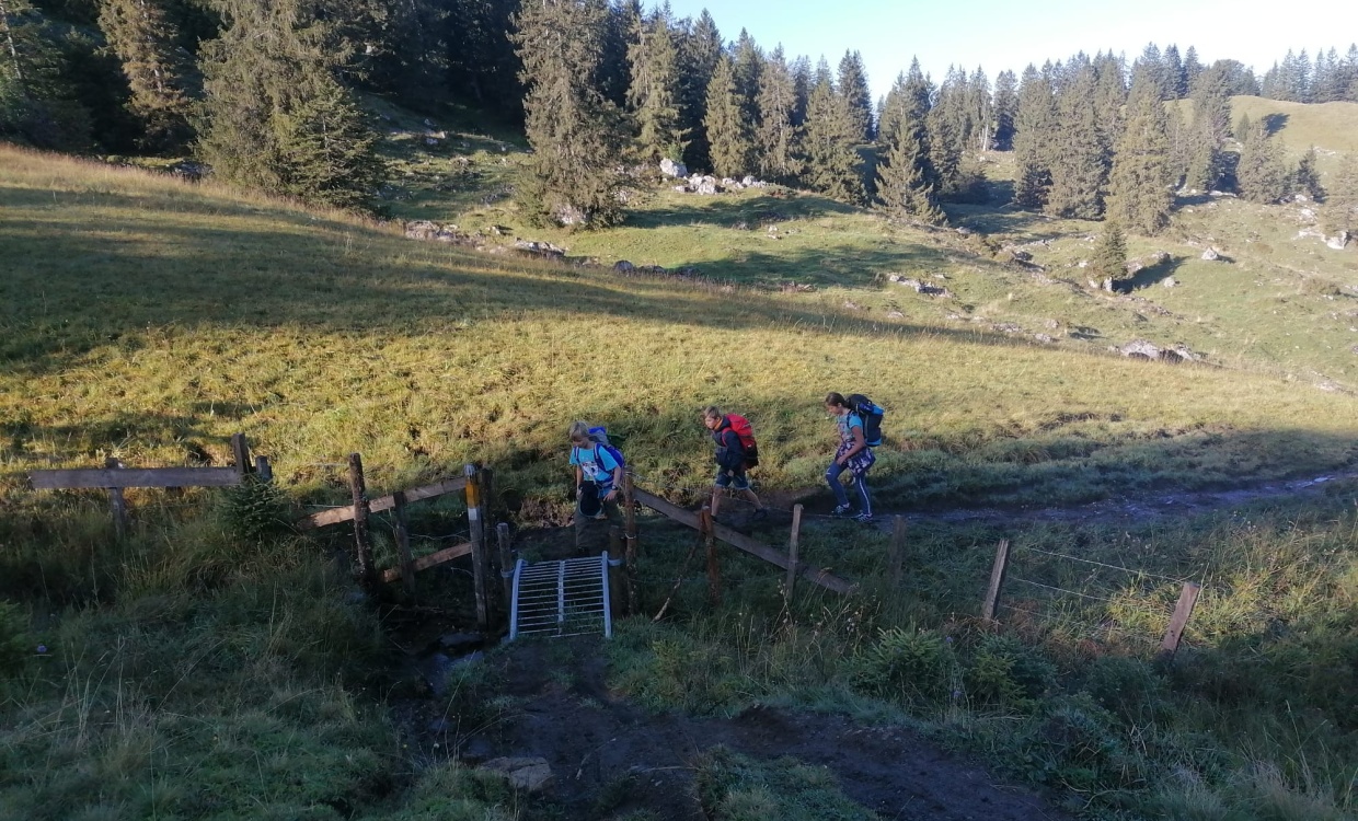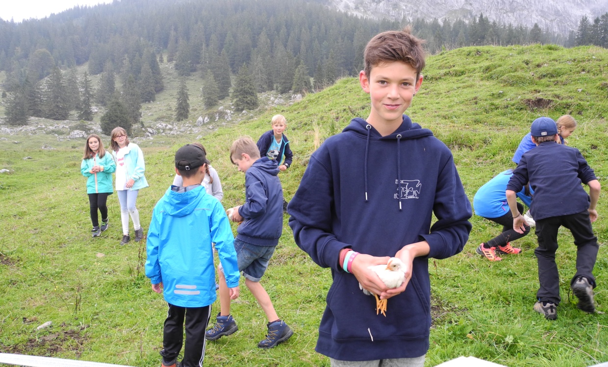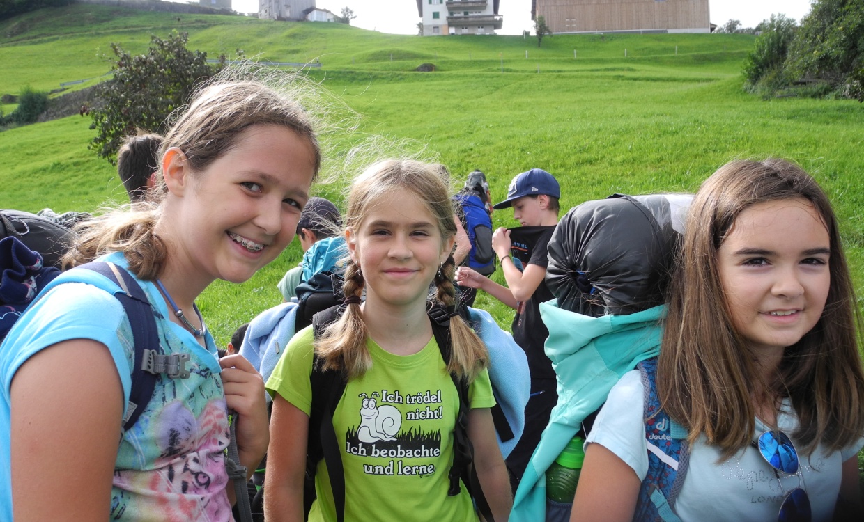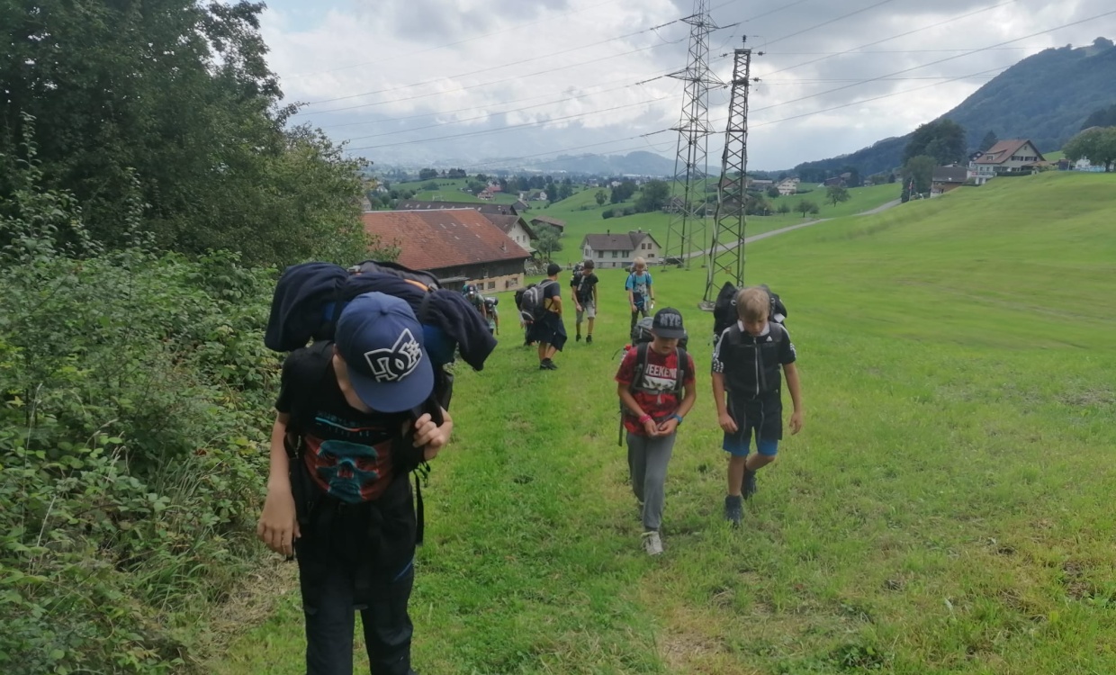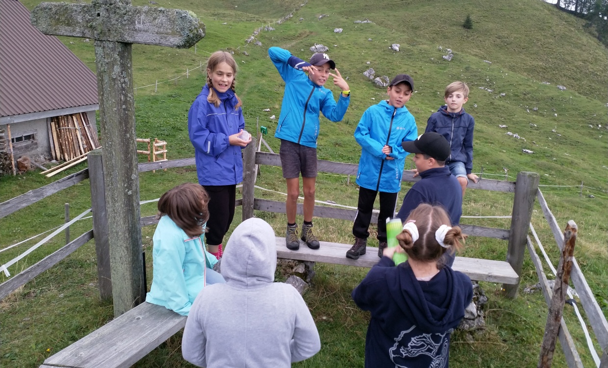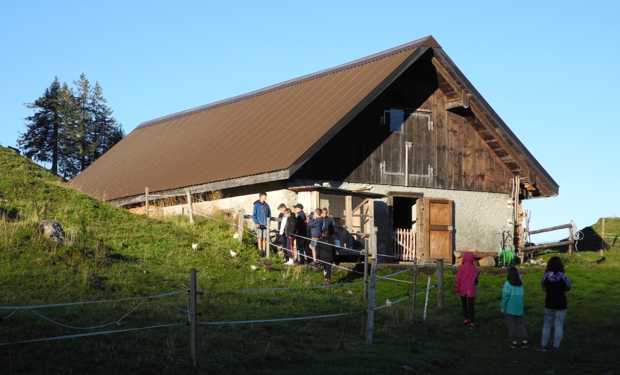 Unsere Schulreise startete um 7:15 in der Schule. Von hier aus gingen wir mit dem Bus nach Neukirch Egnach zum Bahnhof. Mit dem Zug fuhren wir bis St. Gallen, dort mussten wir umsteigen, nämlich auf den Zug der nach Siebnen-Wangen ging. Als wir da waren, liefen wir los. Wir liefen nur 15 min, weil dann waren wir bei einem Spielplatz und dort aßen wir Znüni. Danach ging es weiter, am Anfang ging es meistens bergauf. Wir liefen bis um 12:30, dort aßen wir Zmittag. Jeder von uns hat etwas Eigenes mitgenommen. Um 13:30 ging es dann weiter, aber jetzt war es richtig schön, es ging nur noch gerade aus. Etwa um 14:30 sahen wir die Alp schon. Aber wir mussten noch etwa eine Stunde laufen, wir waren etwa um 15:30 da. Wir wurden herzlich begrüßt mit Kuchen und Tee. Danach gingen wir mal das Heulager anschauen. Wir fanden es richtig bequem im Heu. Unter uns war eine junge und blinde Kuh. Wir Jungs sind dann noch draußen gewesen, es hatte viele Steine und dann sind wir auf denen rum gesprungen. Um 18:00 gab es dann Essen, es gab Älplermagronen mit Apfelmus und Käse. Als kleine Überraschung gab es um 20:00 noch ein Dessert, nämlich Schoko- und Vanillepudding. Nachher genossen wir noch den Sonnenuntergang. Um 20:30 mussten wir Zähne putzen und unser Pyjama anziehen und dann mussten wir ins Bett. Lorena, Sarah, Selina und Vanessa konnten nicht im Heu schlafen, weil sie Heuschnupfen hatten. Am Morgen gab es ein richtig feines Morgenessen mit Zopf, Honig, Butter, Marmelade und Käse. Nach dem Essen packten wir unsere Sachen und liefen weiter bis zur Bergstation Morgenholz. Dort fuhren wir mit der Bahn den Berg hinunter. Danach mussten wir auf den Zug, denn wir wollten nach Rapperswil, weil dort hatte Frau Bekkering eine Überraschung geplant. Wir gingen Minigolf spielen und dort aßen wir noch Mittag. Wir blieben bis um 13:30, dort zahlte uns Frau Bekkering noch ein Glace und dann ging es ab nach Hause. Um 15:55 waren wir wieder zurück.