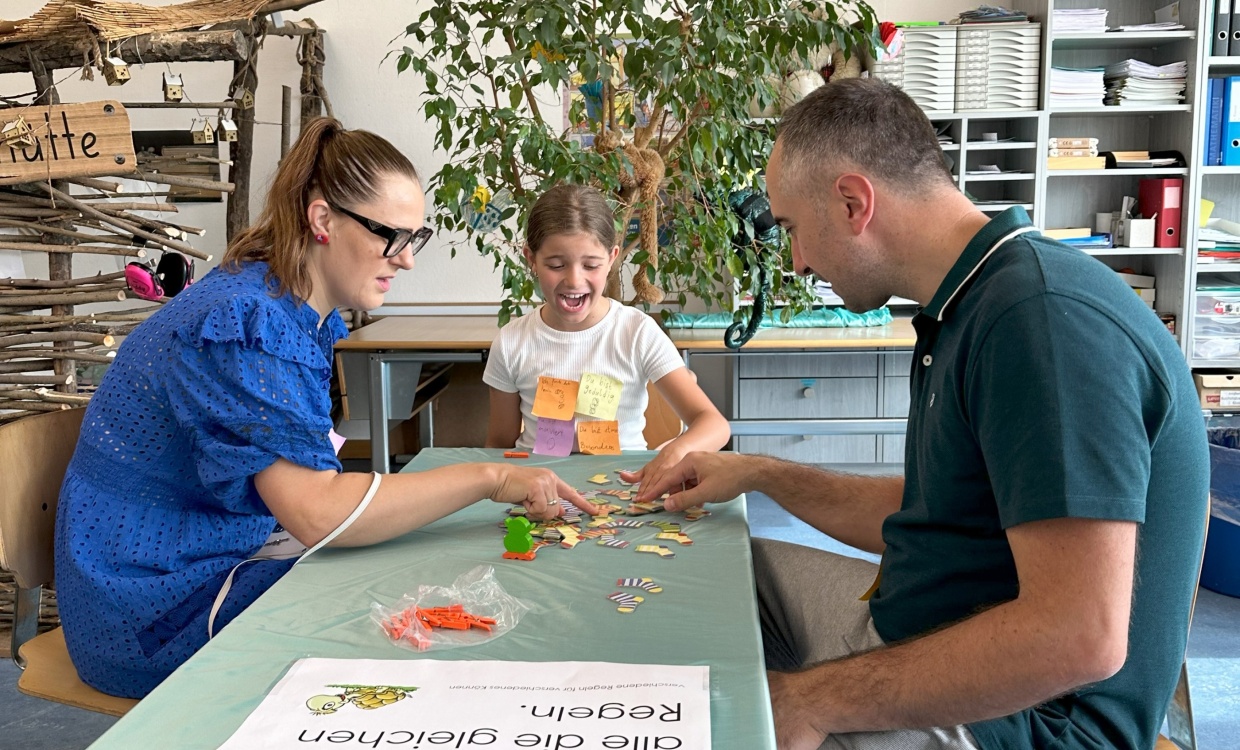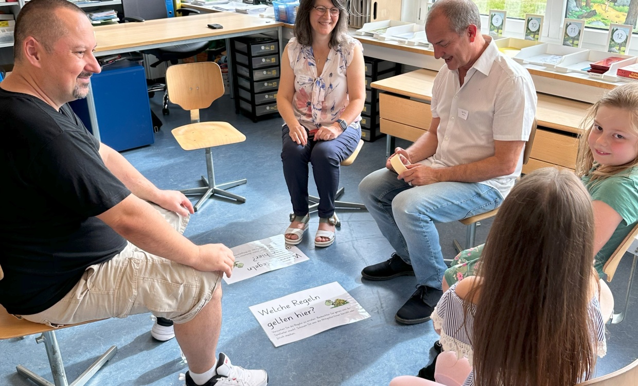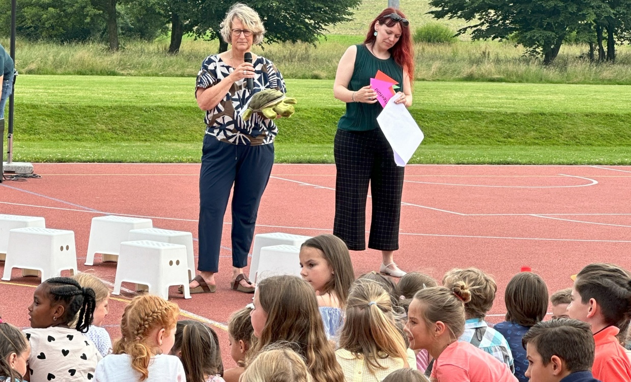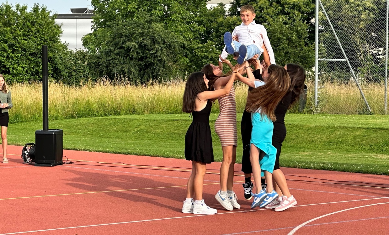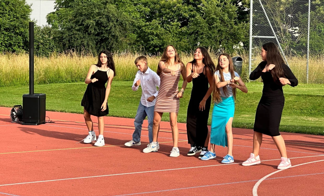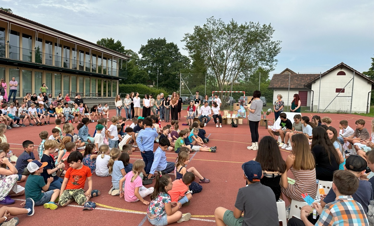 Unüblicherweise fanden sich die Kinder und Eltern dieses Jahr am Donnerstagabend für die Schulschlussfeier an der Primarschule Frasnacht ein. Nach einem kurzen Auftakt im Freien standen die Türen und Zimmer zum Ausprobieren, Austauschen und Spielen für alle Interessierten offen. Die Angebote waren inspiriert durch das Präventionsprogramm «Denk-Wege», mit welchem alle Schulklassen dieses Jahr gearbeitet haben. Es wurden Freundschaftsbändeli geknüpft, Komplimente verteilt oder sich in Selbstbeherrschung geübt. Die warmen Temperaturen trieben viele Eltern dann auch zur Festwirtschaft, welche von der Behörde bedient wurde. Nach den offiziellen Verabschiedungen folgten energiegeladene Tanzeinlagen der 6.Klässlerinnen. Beim letzten Song wurde das ganze Publikum zum Mittanzen eingeladen. Mit sehr vielfältigen Gefühlen neigte sich nicht nur die Sonne, sondern auch eine wunderbare Schulschlussfeier langsam dem Ende.