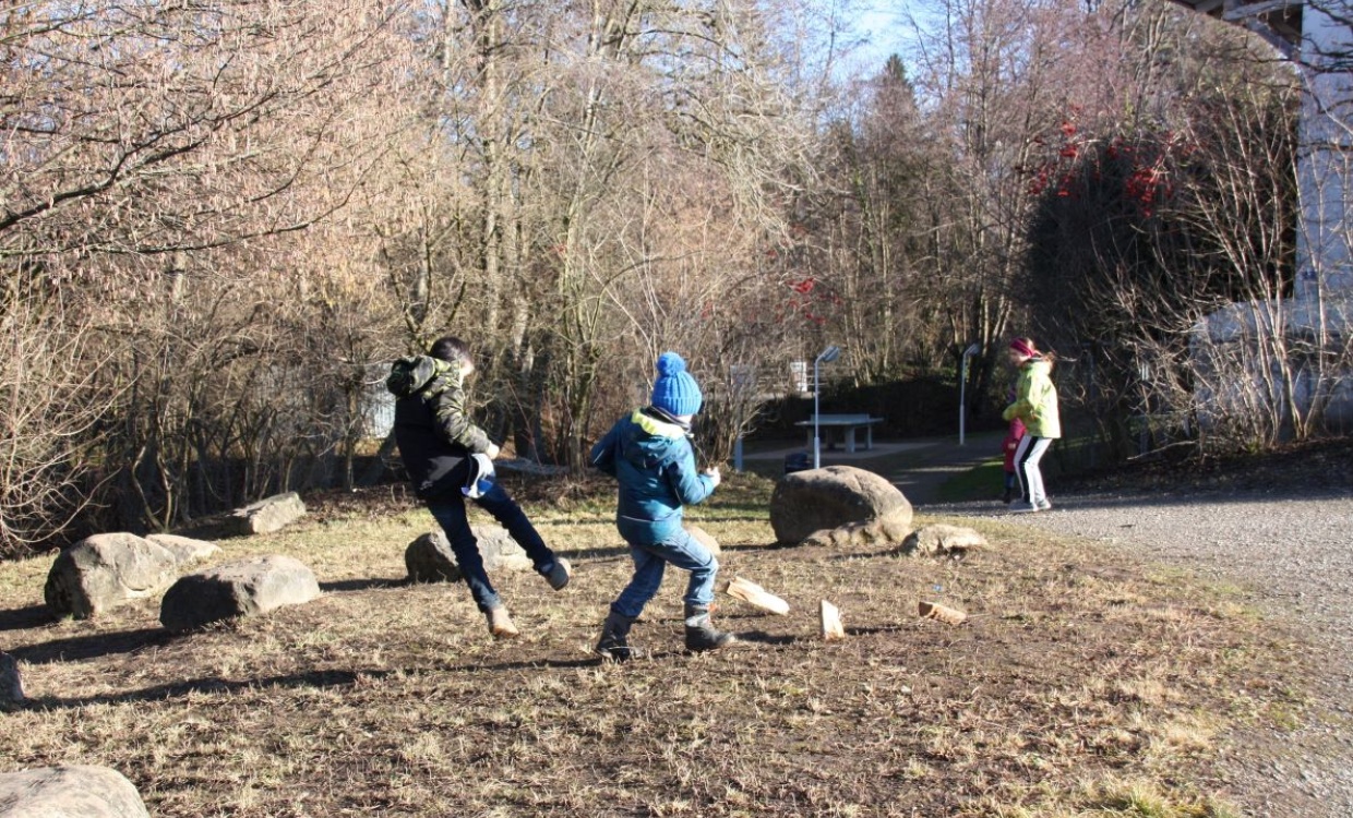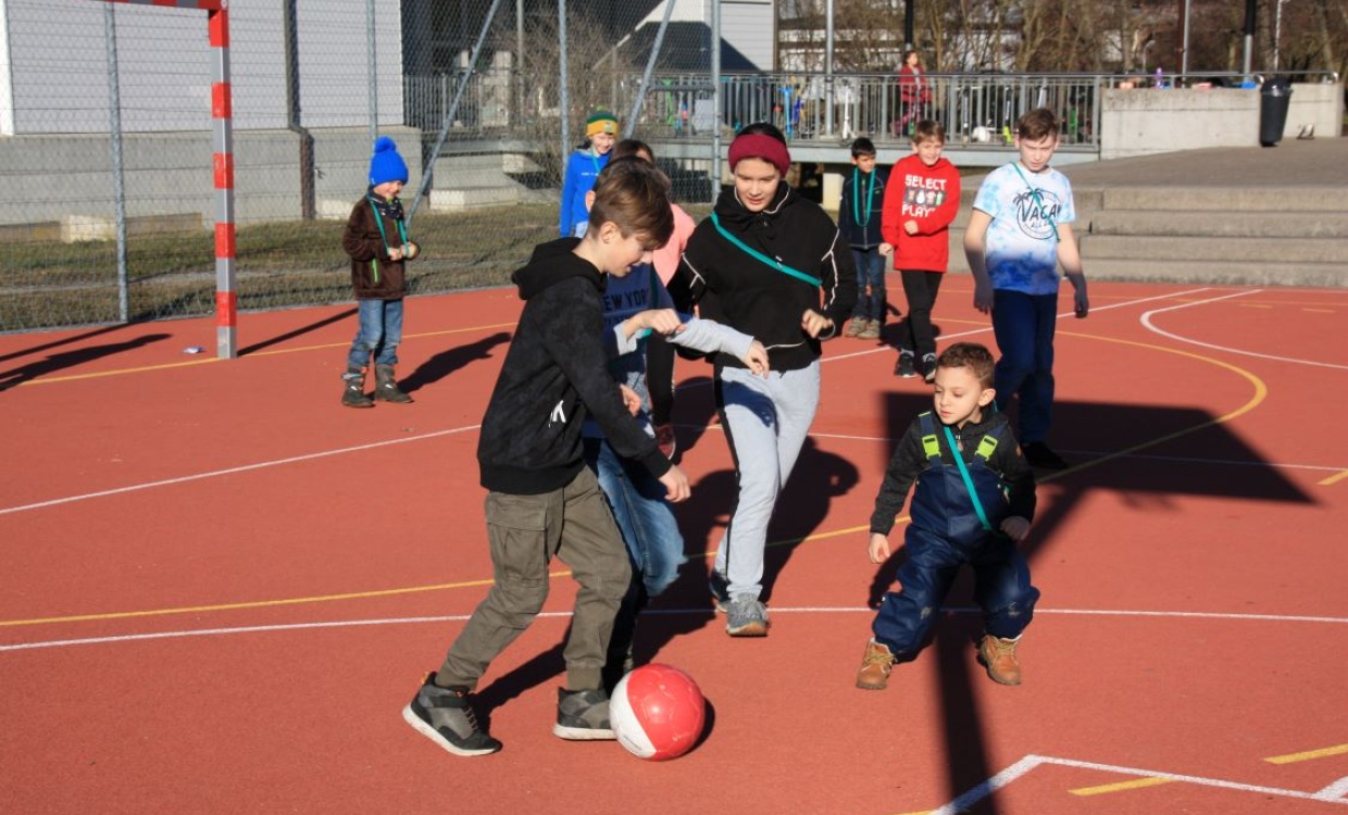 Im Schülerrat wurde ein Antrag für einen Winterspielmorgen eingebracht und von allen Beteiligten begrüsst. Eine Gruppe von Kindern organisierte den Anlass. Am 15. Januar trafen sich alle Kinder vom Kindergarten bis zur sechsten Klasse in Gruppen bei herrlichem Wetter auf dem Pausenplatz. Leider fehlte der Schnee. Doch auch das Alternativprogramm bereitete den Kindern sehr viel Spass.