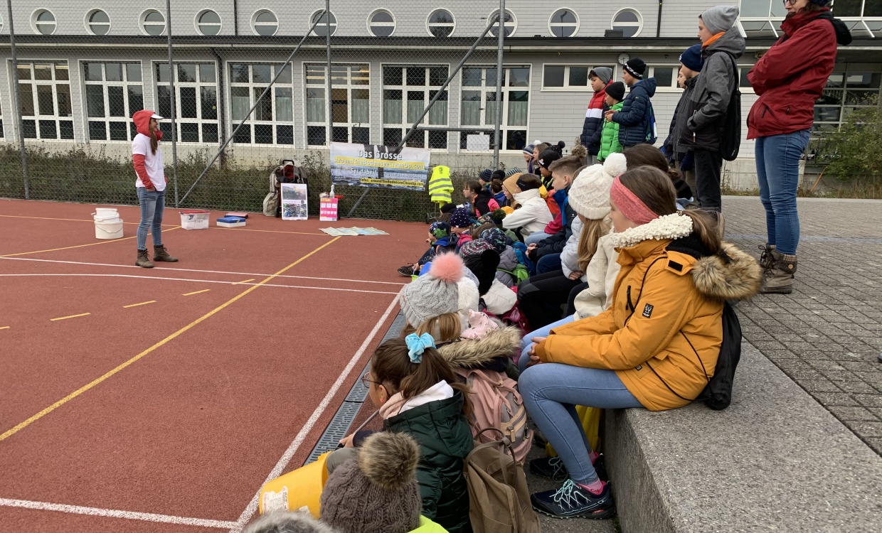 "Es hat Spass gemacht, weil wir so viel Müll gefunden haben. Am Schluss beim Schulhaus haben alle Klassen den gesammelten Abfall ausgeleert. Wir waren also fleissige Sammler." (Isabella, 2.Kl.)