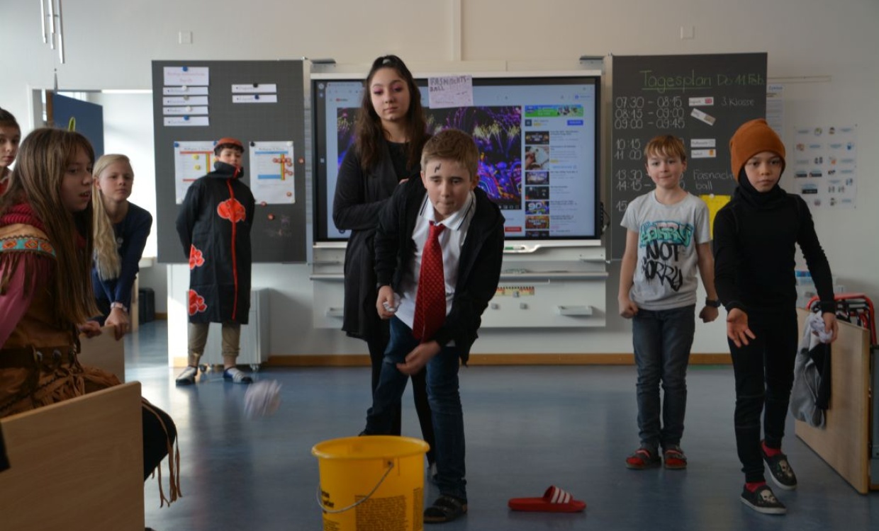 Dieses Jahr fand der Fasnachtsball im Schulhaus statt. Traditionellerweise organisierten die 6. Klässlerinnen und 6. Klässler das bunte Treiben am Donnerstagnachmittag. In sechs Schulzimmer boten sie für die anderen Kinder verschiedene Spiele an, welche im Klassenverband besucht wurden.