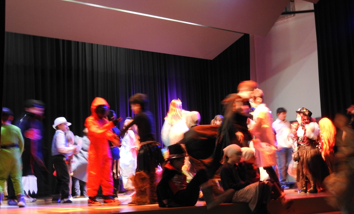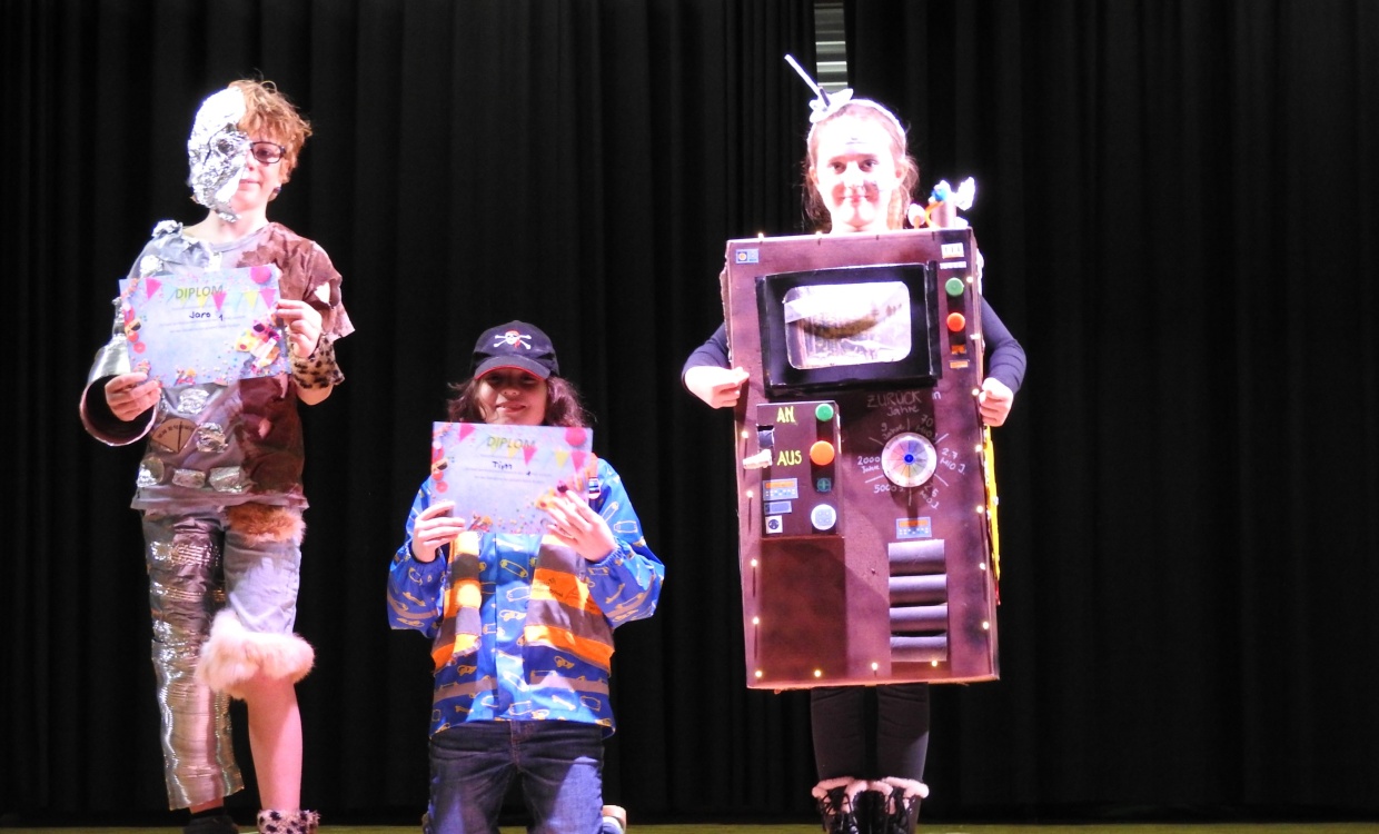 Die Tische stehen, die Bänke auch. Die Uhr tickt und nun war es so weit. Die Kinder konnten die Zeitreise antreten. Als die Kinder hinein kamen, wurden sie an ihre Plätze gewiesen. Dann fingen die Moderatoren an zu erklären, doch plötzlich ging die Zeitmaschine kaputt. Die Kinder mussten Spiele gewinnen und Zutaten sammeln. Währenddessen konnten die Kinder die nicht mitmachten, Essen und Getränke holen. Jenes bezahlten sie mit ihren Zeitreisebons. Zur Halbzeit gab es eine 20-minütige Tanzpause. Danach konnten die 5.Klässler/innen ihre Spiele spielen und die Sieger des Kostümwettbewerbs und des Quiz wurden veröffentlicht. Dann am Schluss konnten sie die gewonnenen Zutaten zusammenleeren und die Zeitreisemaschine war repariert. Das war unser Fasnachtsball.