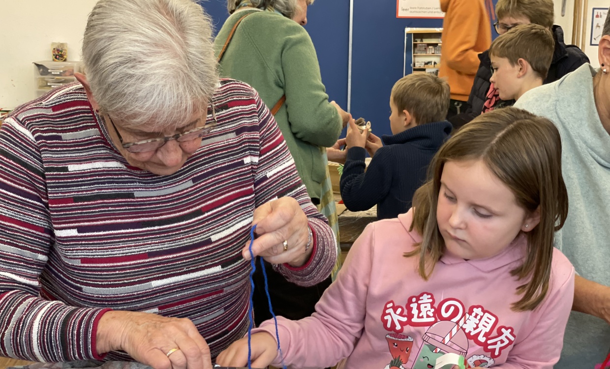 Am Generationenanlass durften für einmal die Grosseltern die Kinder durch die Schulzimmer begleiten. Unterschiedliche weihnachtliche Angebote und eine Kaffestube luden die Besucher*innen zum gemeinsamen Ausprobieren und Erfahrungen sammeln ein. Die Kinder freuten sich sehr, die Verwandten durchs Schulhaus zu führen und wollten am liebsten noch lange an den Posten verweilen.