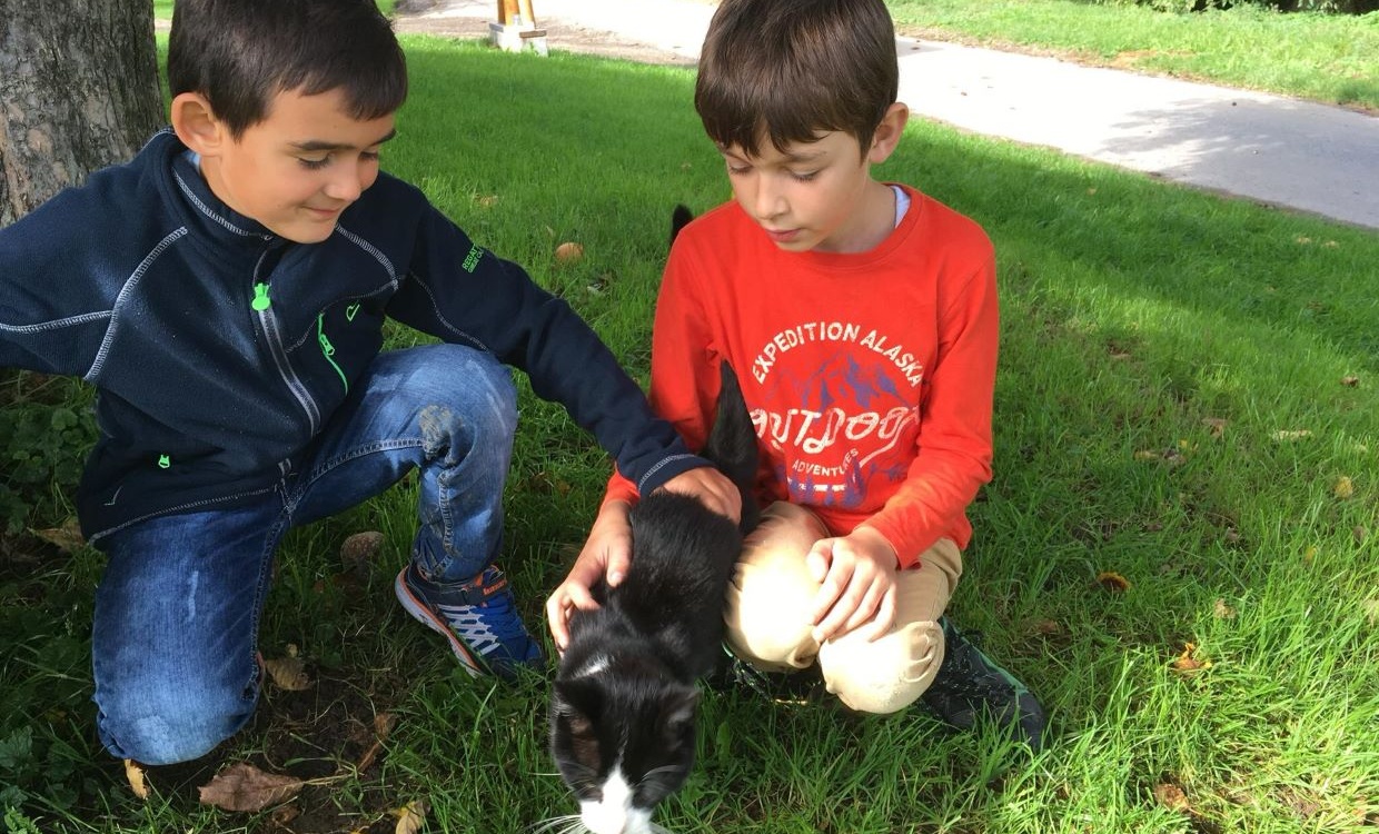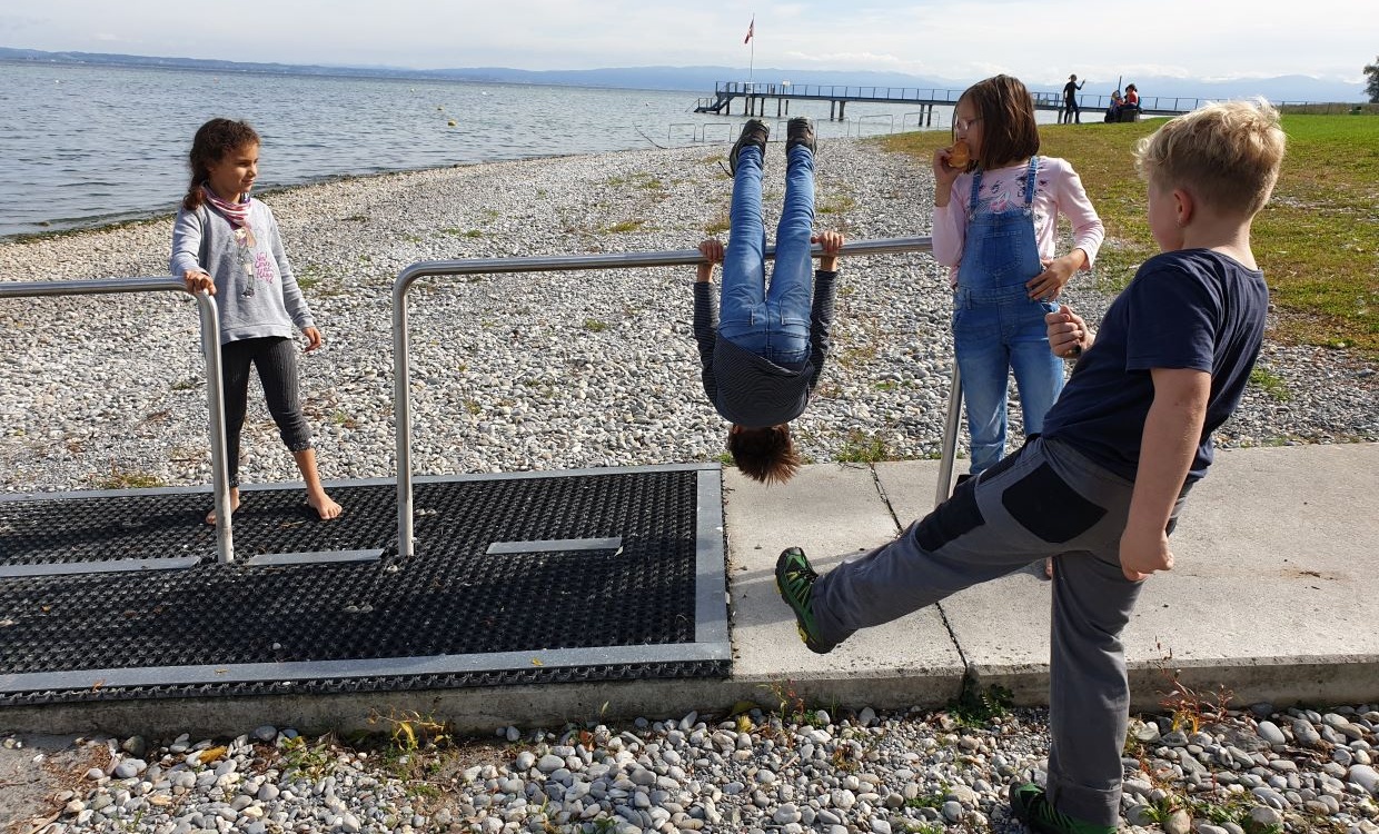 Wir durften die Katze streicheln. Ich habe mit Jolina Akrobatikübungen gemacht. Und wir haben eine Bratwurst oder einen Cervelat gegessen. Die Lehrer haben Fotos gemacht. Wir mussten lange laufen, aber es hat Spaß gemacht. Noah hat am Schluss Wasser auf die Glut im Grill geworfen.