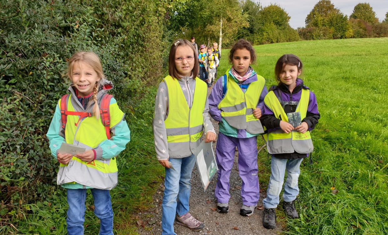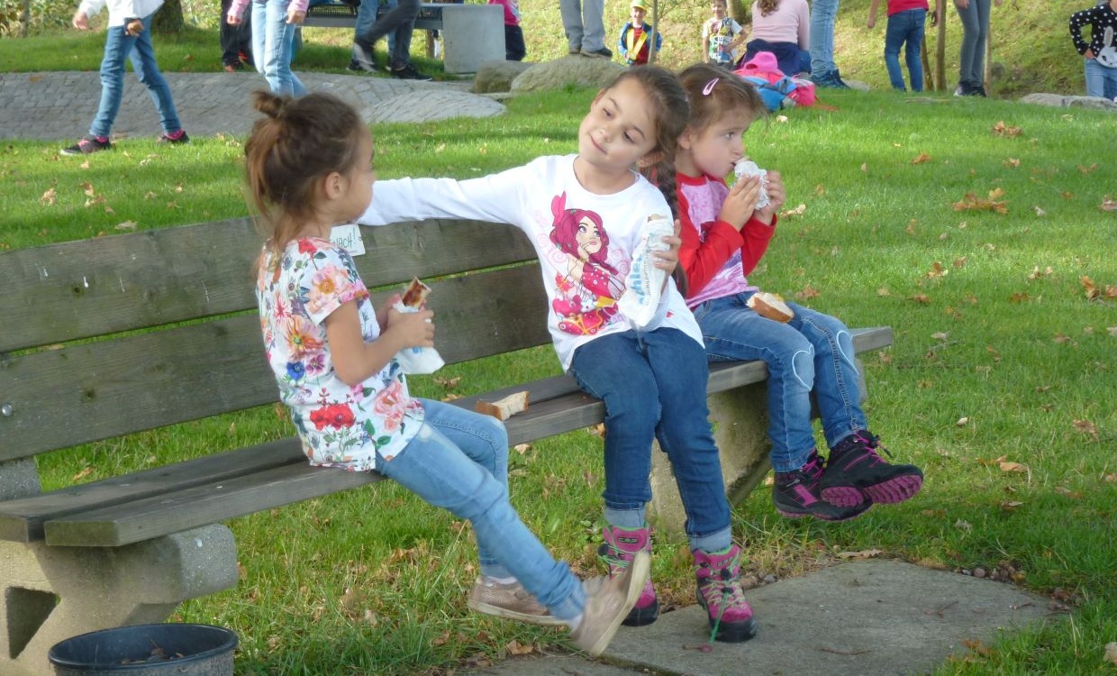 Die ganze Schule war am Herbstbummel und wir hatten viel Spass. Es gab ein Rätsel. Das Lösungswort war «Frasnachter Herbst». Die Kindergartenkinder sind den kürzesten Weg gelaufen.