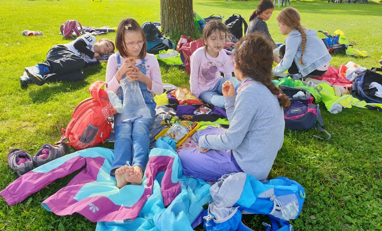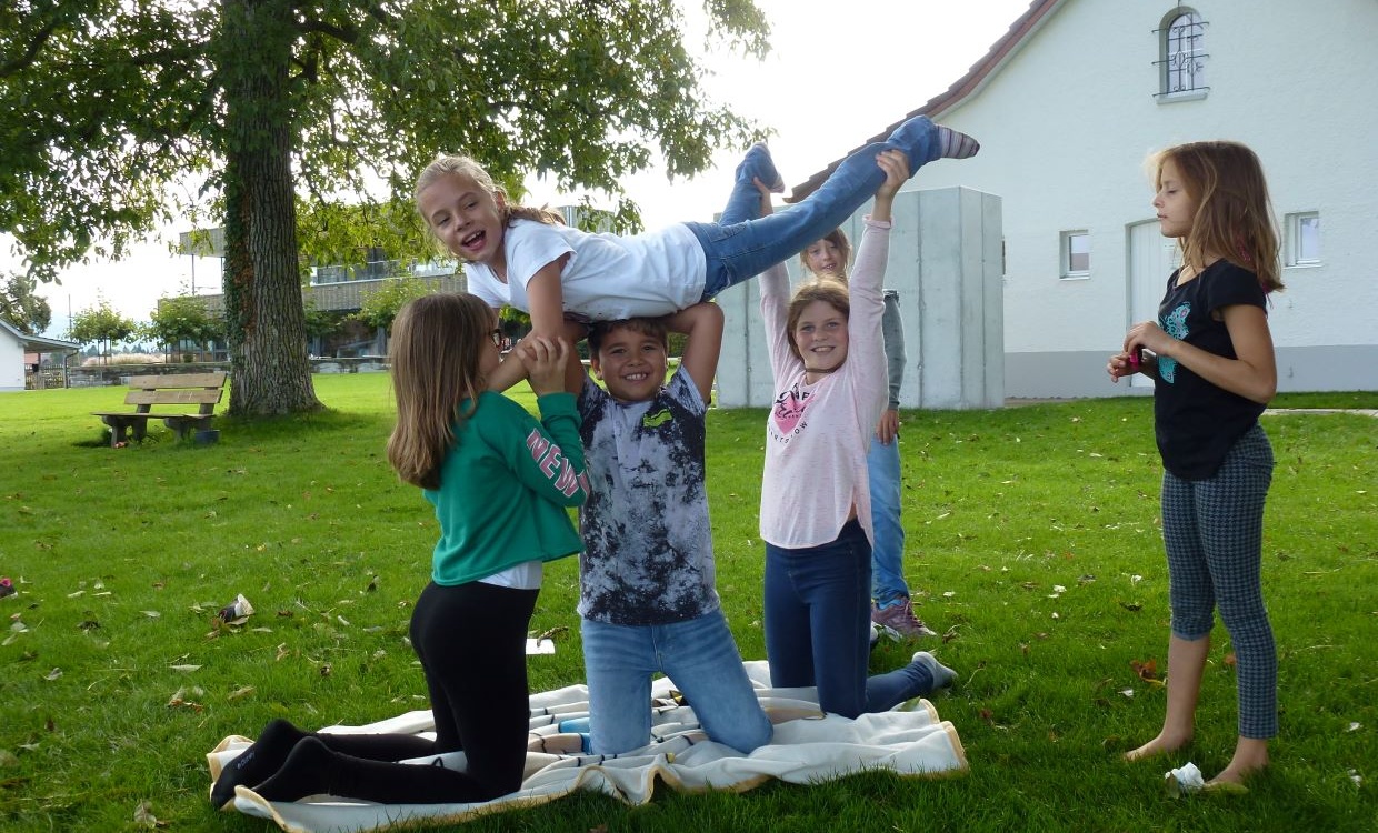 Bei Sonnenschein und milden Temperaturen starteten alle Kinder und Lehrpersonen am Freitag 27. September auf den alljährlichen Herbstbummel. Je nach Altersstufe liefen die Schüler/innen eine der drei Routen zum gemeinsamen Ziel. Unterwegs lösten die Kinder ein Rätsel mit Informationen zur jeweiligen Strecke. Zur Mittagszeit kamen alle Gruppen in der Badi Wiedehorn an, wo bereits die Würste auf dem Grill auf die hungrigen Wanderer warteten. Unser Hauswart war dabei der Grillmeister. Nach der Verpflegung spielten die Kinder am Bach, flitschten Steine auf den See oder bauten gemeinsam Menschen-Pyramiden. Auf dem Rückweg liefen wir altersdurchmischt. Dabei nahmen viele Kinder kleinere Kollegen/innen Huckepack, um den Rückweg gemeinsam zu schaffen. Die Stimmung war grossartig und friedlich.