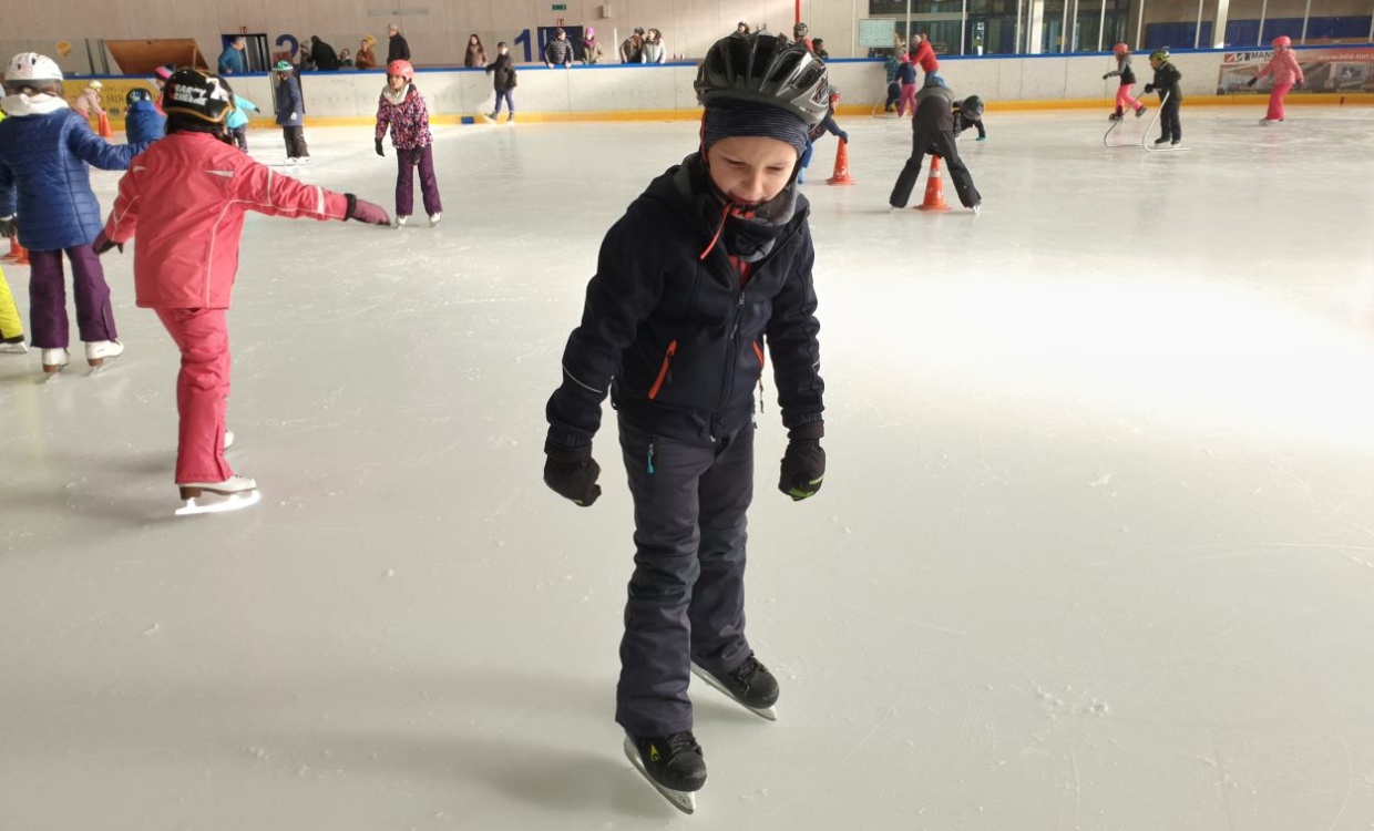 Wir haben Eishockey gespielt und sind Schlittschuh gefahren. Es war schwierig Goals zu schiessen beim Eishockey.