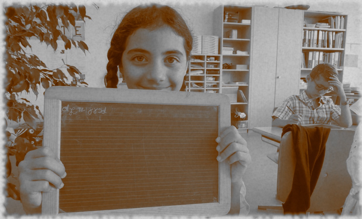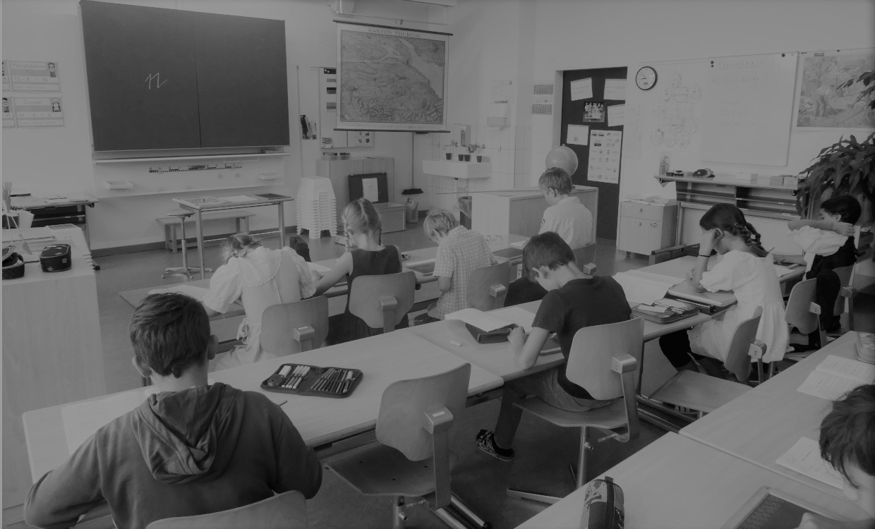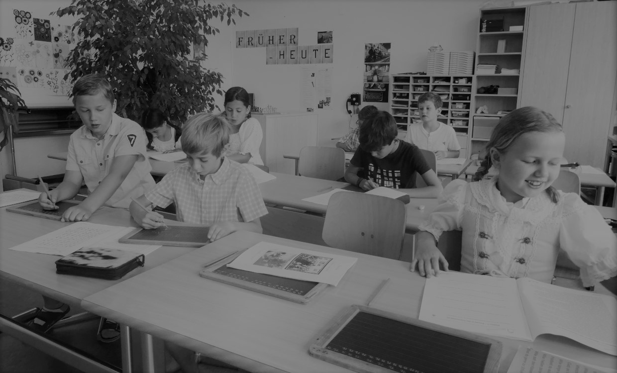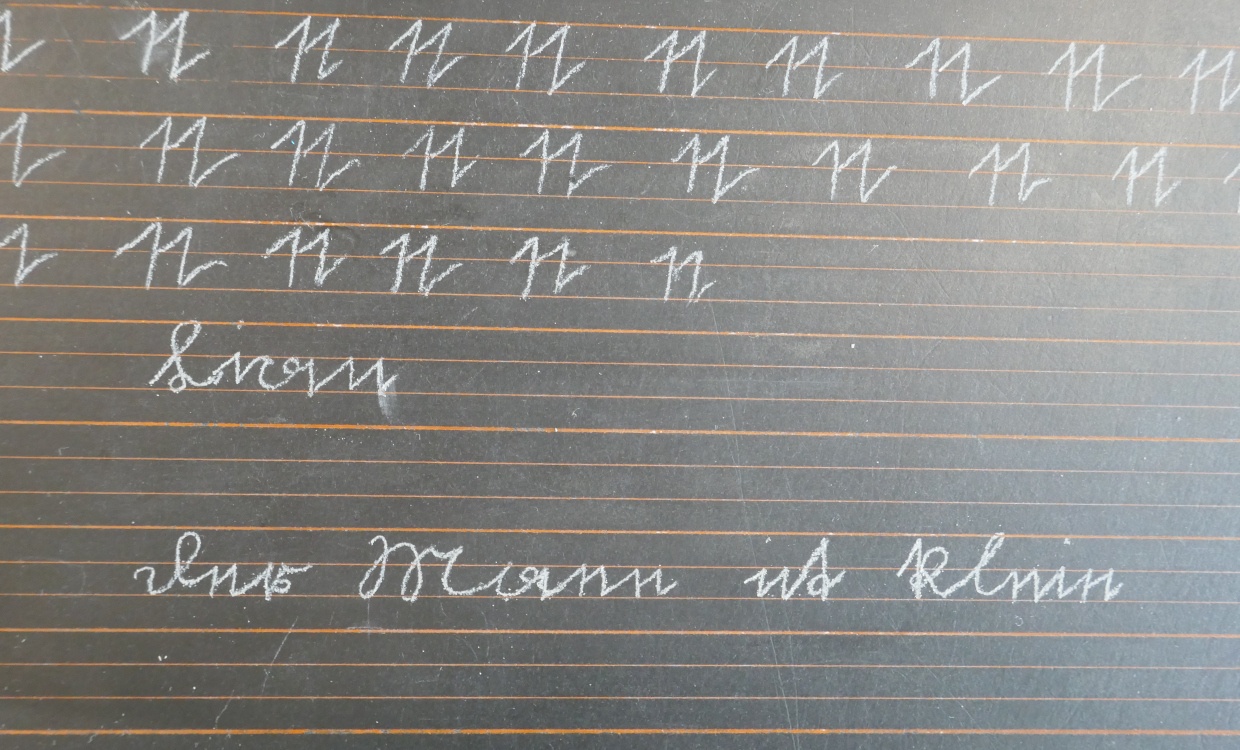 Aufstehen, guten Morgen-Chor, hinsetzten. So startete unser Schultag anno dazumal. Auf Schiefertafeln haben wir in Sütterlinschrift geschrieben und gerechnet. Mit Tinte und Feder lösten die Kinder verschiedene Aufgaben. Dazwischen etwas körperliche Ertüchtigung, bevor es wieder still und konzentriert an die Arbeit ging.