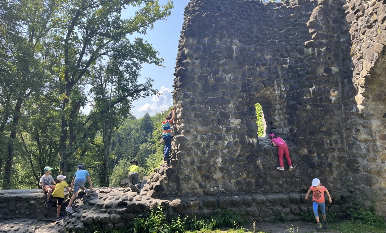 Passend zu unserem Thema «Ritter und Burgen» machten wir uns zu Fuss auf den Weg zur Steiner Burg.