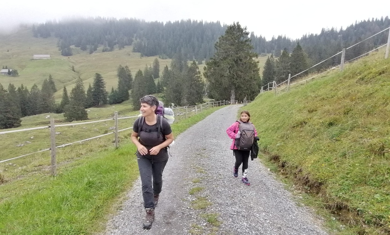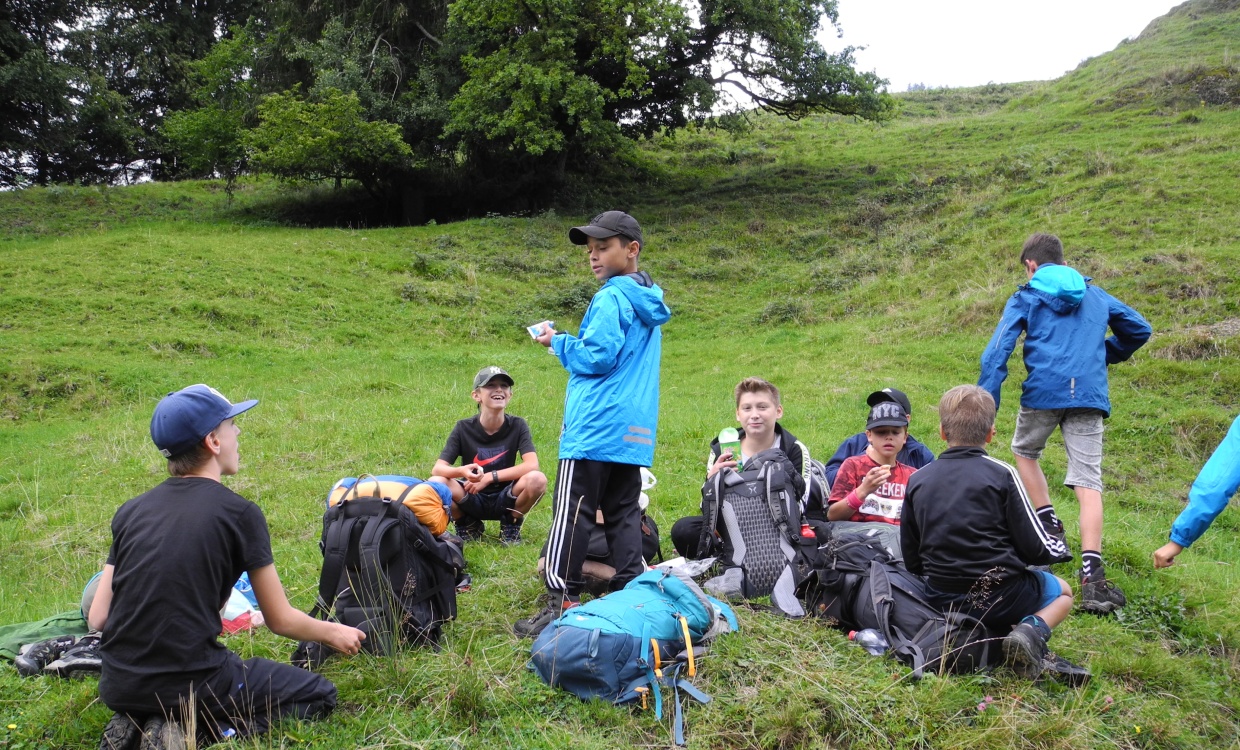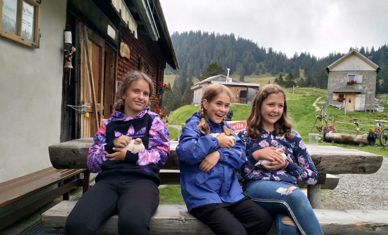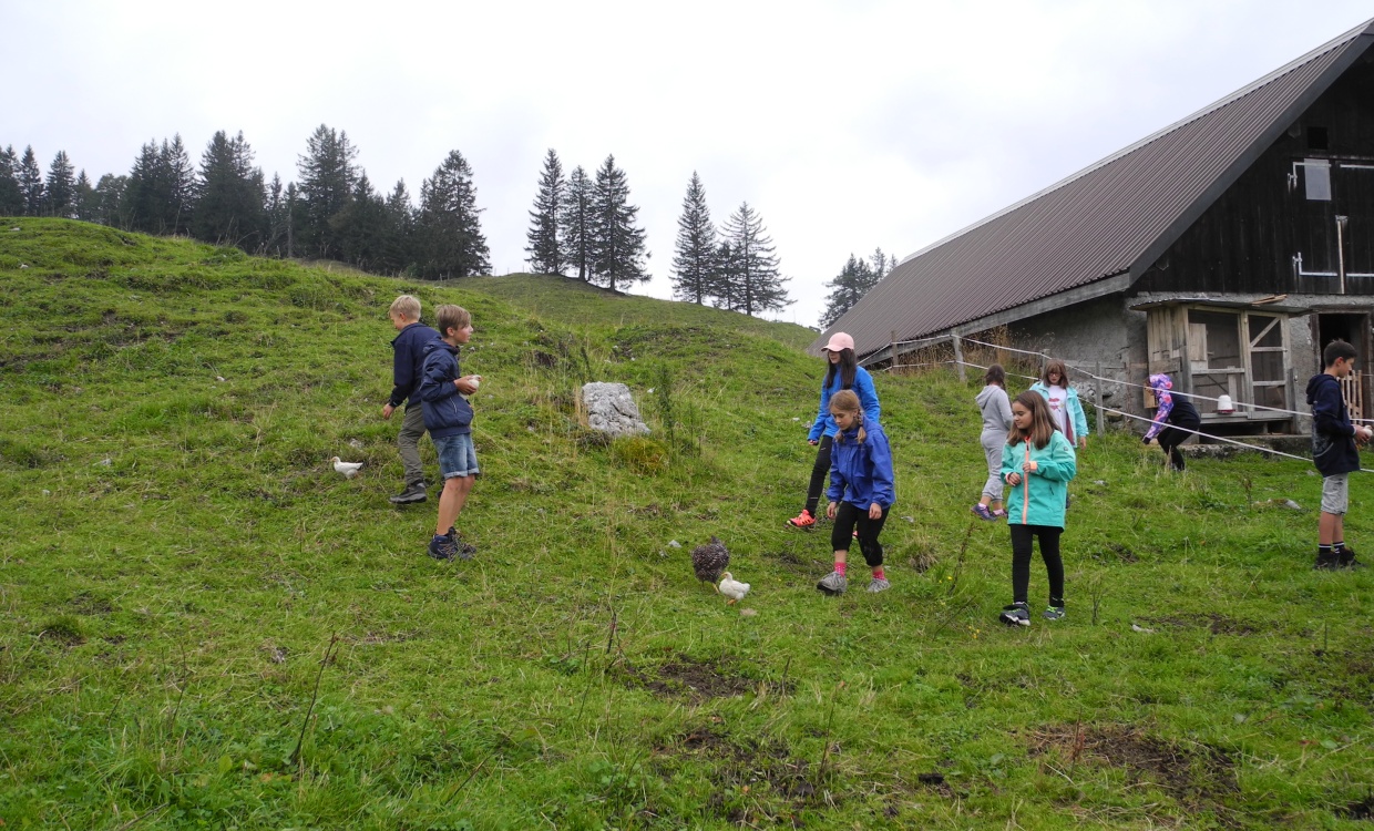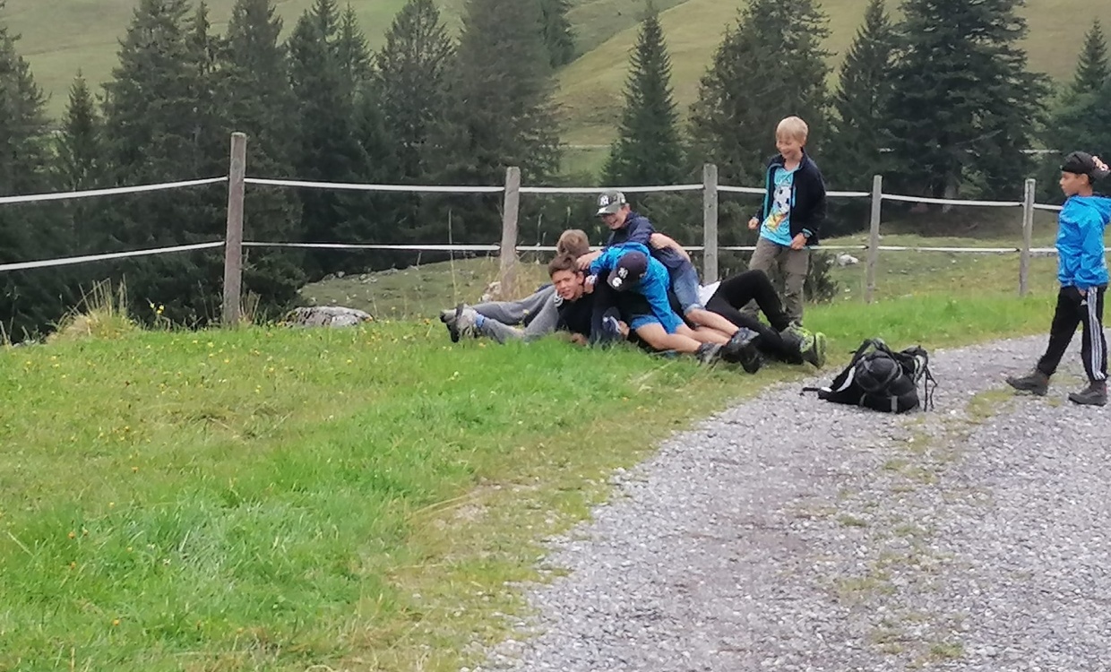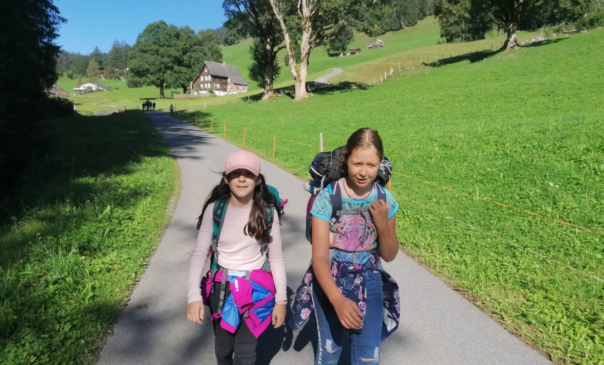 Unsere Schulreise startete um 7:15 in der Schule. Von hier aus gingen wir mit dem Bus nach Neukirch Egnach zum Bahnhof. Mit dem Zug fuhren wir bis St. Gallen, dort mussten wir umsteigen, nämlich auf den Zug der nach Siebnen-Wangen ging. Als wir da waren, liefen wir los. Wir liefen nur 15 min, weil dann waren wir bei einem Spielplatz und dort aßen wir Znüni. Danach ging es weiter, am Anfang ging es meistens bergauf. Wir liefen bis um 12:30, dort aßen wir Zmittag. Jeder von uns hat etwas Eigenes mitgenommen. Um 13:30 ging es dann weiter, aber jetzt war es richtig schön, es ging nur noch gerade aus. Etwa um 14:30 sahen wir die Alp schon. Aber wir mussten noch etwa eine Stunde laufen, wir waren etwa um 15:30 da. Wir wurden herzlich begrüßt mit Kuchen und Tee. Danach gingen wir mal das Heulager anschauen. Wir fanden es richtig bequem im Heu. Unter uns war eine junge und blinde Kuh. Wir Jungs sind dann noch draußen gewesen, es hatte viele Steine und dann sind wir auf denen rum gesprungen. Um 18:00 gab es dann Essen, es gab Älplermagronen mit Apfelmus und Käse. Als kleine Überraschung gab es um 20:00 noch ein Dessert, nämlich Schoko- und Vanillepudding. Nachher genossen wir noch den Sonnenuntergang. Um 20:30 mussten wir Zähne putzen und unser Pyjama anziehen und dann mussten wir ins Bett. Lorena, Sarah, Selina und Vanessa konnten nicht im Heu schlafen, weil sie Heuschnupfen hatten. Am Morgen gab es ein richtig feines Morgenessen mit Zopf, Honig, Butter, Marmelade und Käse. Nach dem Essen packten wir unsere Sachen und liefen weiter bis zur Bergstation Morgenholz. Dort fuhren wir mit der Bahn den Berg hinunter. Danach mussten wir auf den Zug, denn wir wollten nach Rapperswil, weil dort hatte Frau Bekkering eine Überraschung geplant. Wir gingen Minigolf spielen und dort aßen wir noch Mittag. Wir blieben bis um 13:30, dort zahlte uns Frau Bekkering noch ein Glace und dann ging es ab nach Hause. Um 15:55 waren wir wieder zurück.