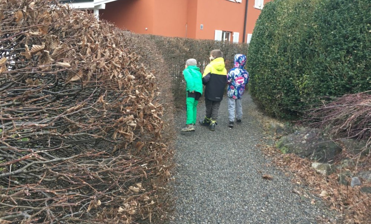 Wir haben gehört und gesehen: Buntspecht, Amsel, Huhn, Blaumeise, Türkentaube, Grünfink, Spatz und Rotkehlchen. Es hat uns sehr viel Spass gemacht. Von Damiano, Amando und Olivia.