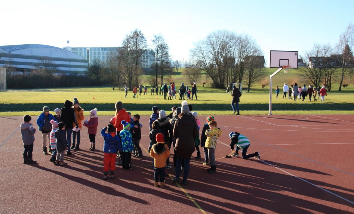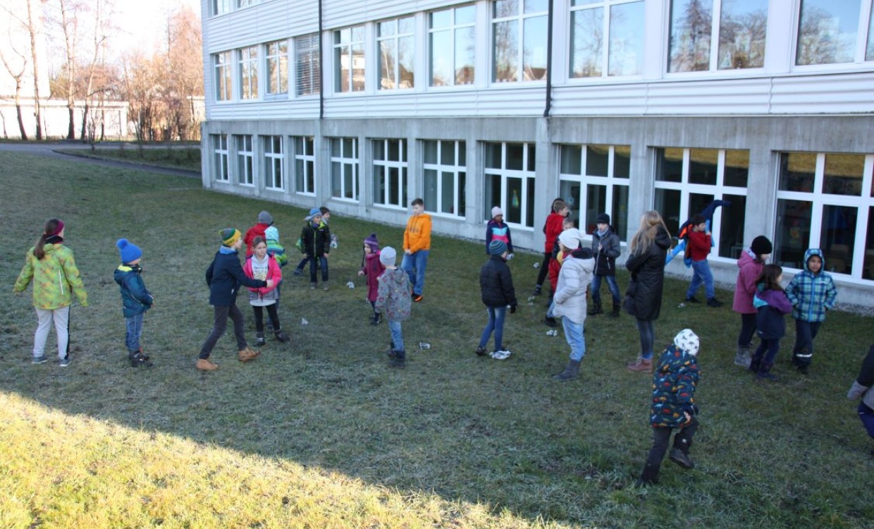 Im Schülerrat wurde ein Antrag für einen Winterspielmorgen eingebracht und von allen Beteiligten begrüsst. Eine Gruppe von Kindern organisierte den Anlass. Am 15. Januar trafen sich alle Kinder vom Kindergarten bis zur sechsten Klasse in Gruppen bei herrlichem Wetter auf dem Pausenplatz. Leider fehlte der Schnee. Doch auch das Alternativprogramm bereitete den Kindern sehr viel Spass.