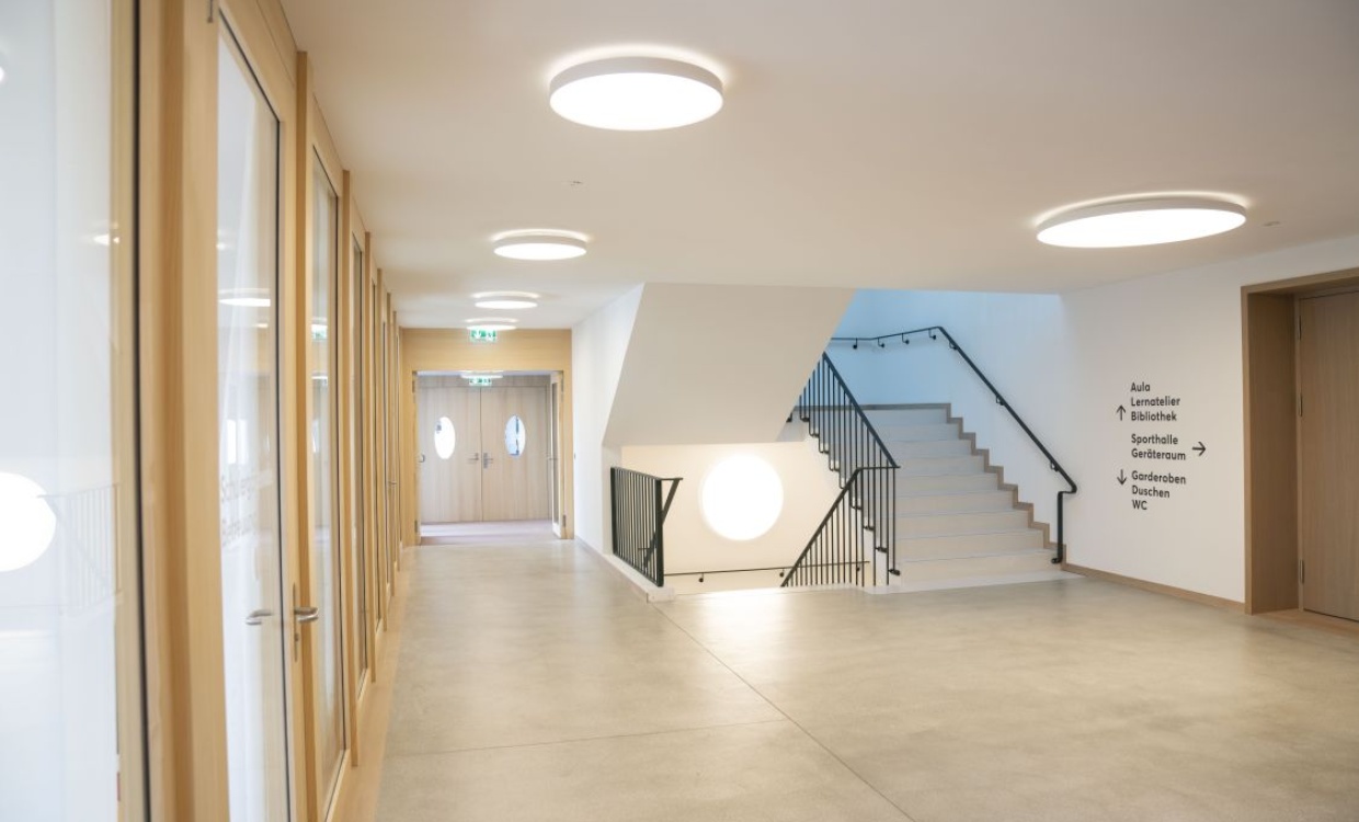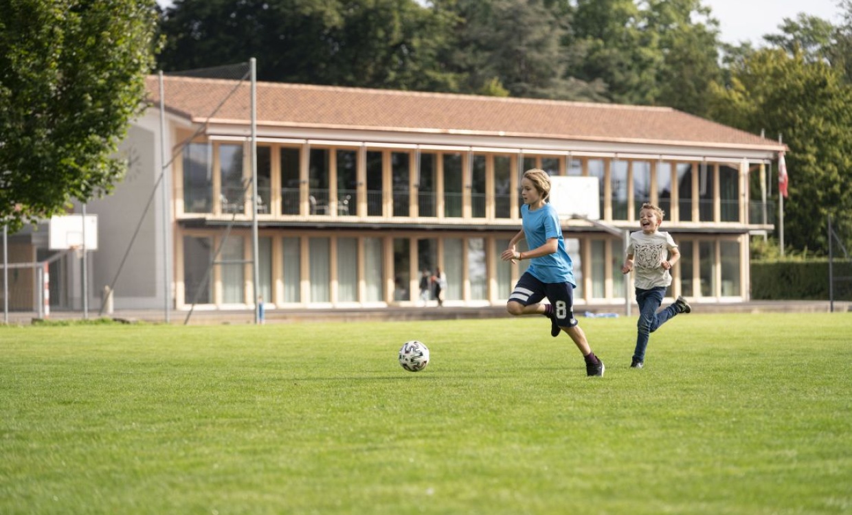 Die grosszügige, naturnahe Schulanlage im Grünen bietet moderne Lern- und Arbeitsorte für Kinder und Mitarbeiter.